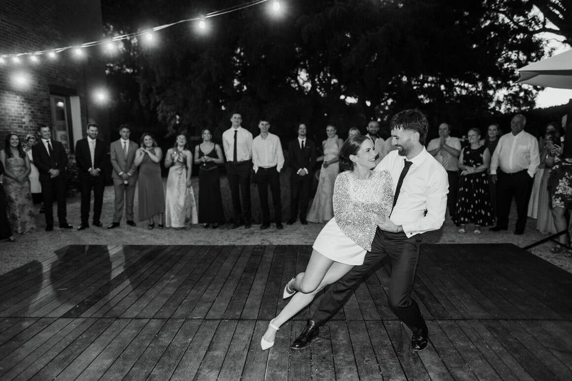 MEMORABLE MOMENT “Dec’s speech. Without doubt. He had me, and everyone else, absolutely sobbing. I was initially intending to make a speech, but after how emotional I had been in the lead up to the day and the day of, I knew I didn’t have a hope of getting a coherent word out. So Dec really came through! Dec and I also made a point of making sure we didn’t lose track of each other during the course of the night, which you hear happens to so many couples. Thankfully, Dec and I had a lot of time together, dancing, drinking and just soaking it all in, which was really special. We also surprised everyone with an Irish dance-off between Dec, his dad (an Irish man, known to pull out the jig after a few beers), and one of our gorgeous bridesmaids (Brittany—a former National champion Irish dancer, who also placed top 15 in the world). It was a close call, but I ultimately named Dec’s dad the winner and invited everyone onto the dance floor to kick things off.”