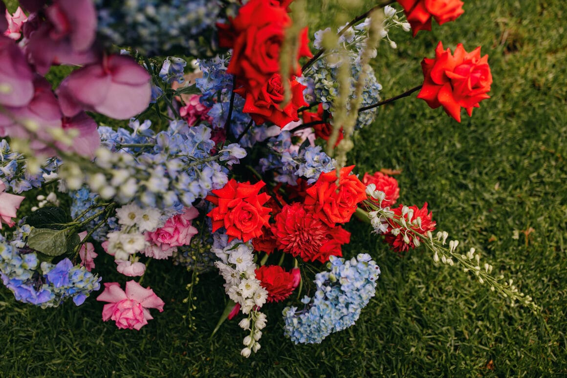 Take it from Taylor and Declan – “Don’t lose sleep stressing about the weather, and always have a contingency plan.” You see, you’d never guess it by looking at their colourful summer wedding album (by Kyra Boyer Photography, btw), but just 40 minutes before the duo were due to say ‘I do’, a HUGE hail storm made a surprise appearance, setting off a “scramble” to get all the elements of their outdoor ceremony undercover. “Because of the severity of the hail and wind, everything still got soaked,” the newlyweds explain, “but after the 10-minute storm, the sun came back out and you never would have known. It was beautiful and we still had the wedding of our dreams outside at Euroa Butter Factory!”
