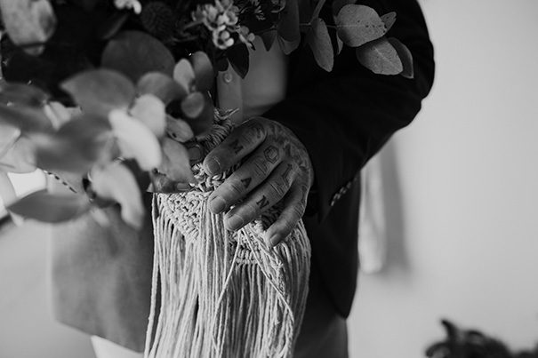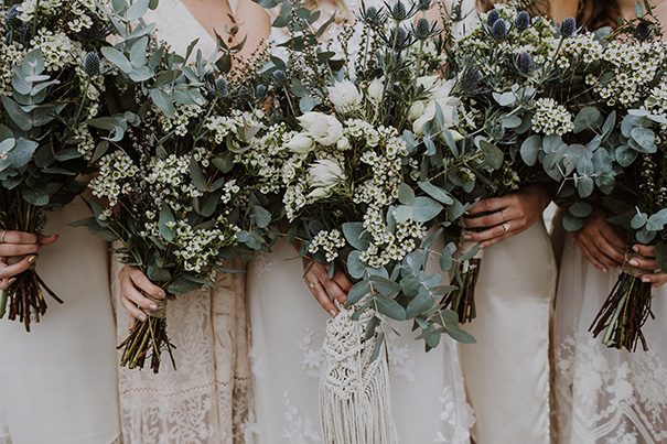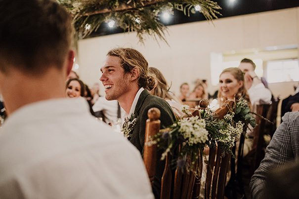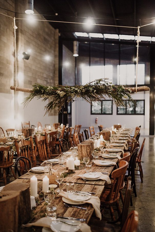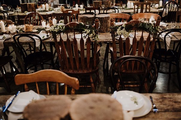 While it was a bit difficult at first to secure the ideal location for their big day, there’s no denying that high school sweethearts Teags and Brad (first seen in Issue 16) eventually found their perfect match. “We ended up using the field across from the one Brad proposed on, which looked quite similar. We loved it. I really struggled to find a reception venue because all I wanted was an open canvas to do what I wanted, but I couldn’t find any. When we found The Joinery, we fell in love and booked it straight away,” explains Teags, who describes their epic day of days as “stripped back and casual with lots of foliage and wood”.