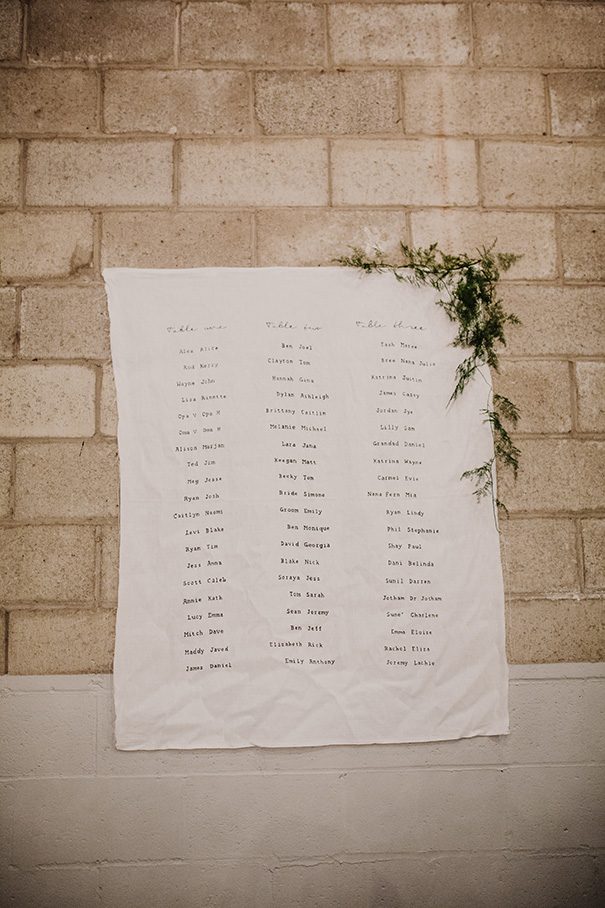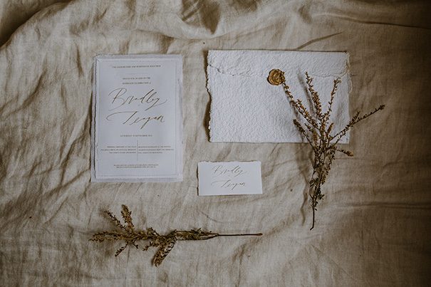 An undeniably accomplished pair of DIYers, Teags and Brad ensure us that they have no regrets about having an almost entirely handmade celebration. They tell us, “We’re both super creative people so it let us go crazy and felt a great sense of accomplishment.” Their largest feat? The handmade stationery – which was pretty epic, if we do say so ourselves. “The biggest DIY was our wedding invitations. I hand made the paper for the invitations, which I then sewed. I designed the invite layout, ripped the edges to make it look handmade and then sewed it onto linen. It was hard work but worth it.”