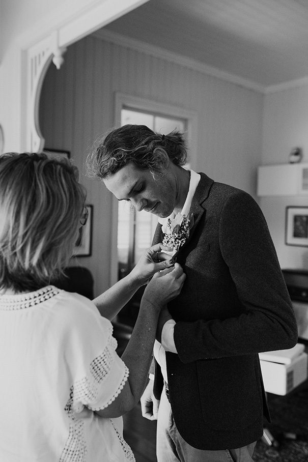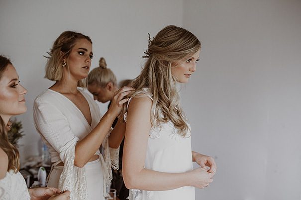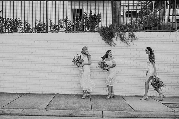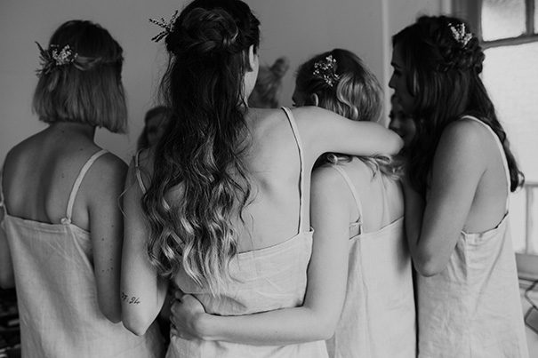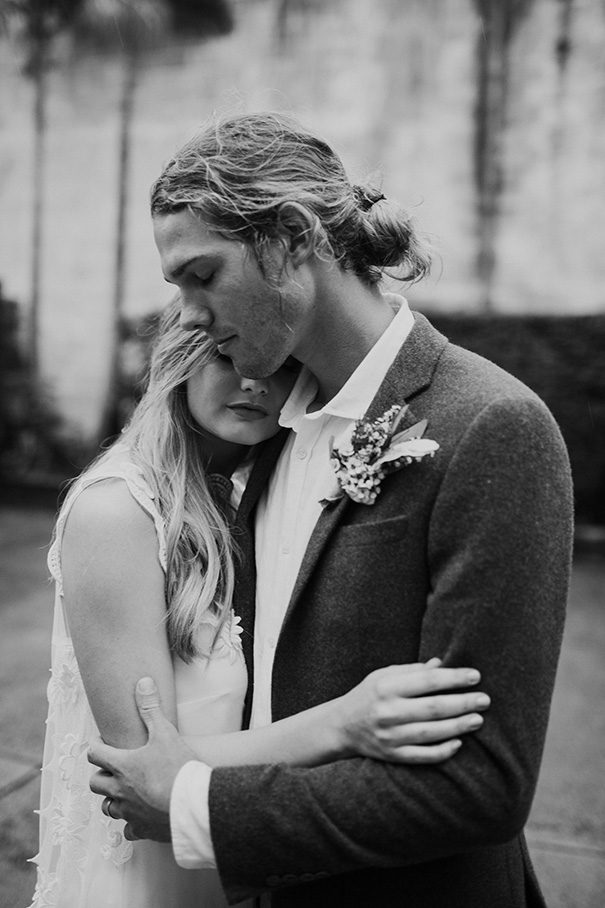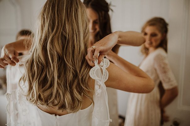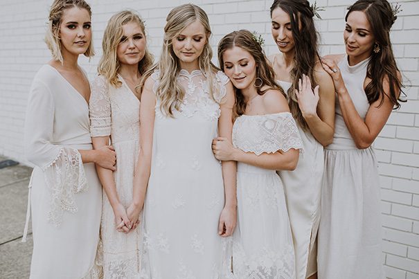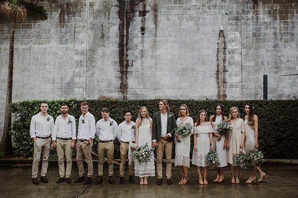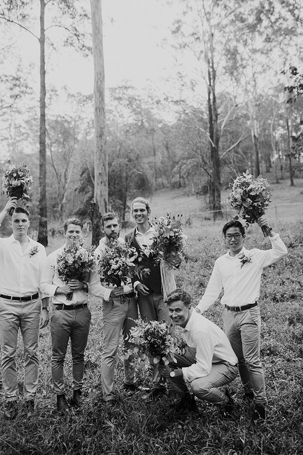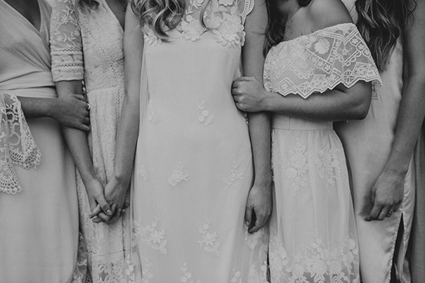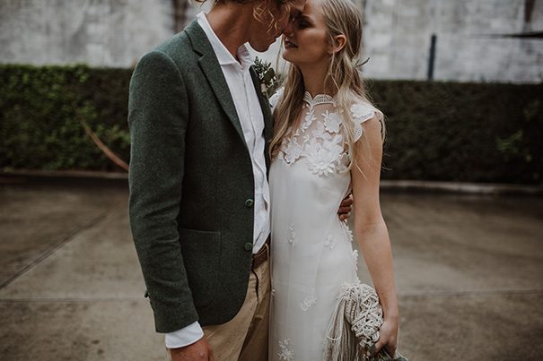 CREDITS Photographer Alice Mahran // Cinematographer Joel Tronoff // Florist The Village Flower Merchant // Ceremony Venue Pullenvale, QLD // Reception Venue The Joinery, QLD // Catering Chez Nous // Furniture Hire Hodge Podge // Sound Hire Brisbane Sound Group // Entertainment J and R Music // Rings Natalie Marie Jewellery // Bridal Gown Bride’s grandmother’s gown // Lingerie For Love of Lemons // Shoes Tony Bianco // Accessories Molten Store // Hair Infinity Hair // Makeup Kate Devlin // Groom’s Jacket ASOS // Groom’s Shirt and Pants Industrie // Shoes Rodd and Gun // Watch The Horse.