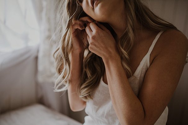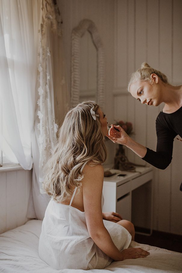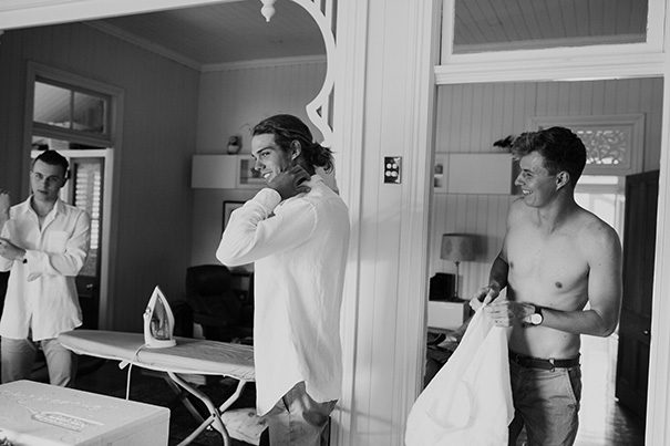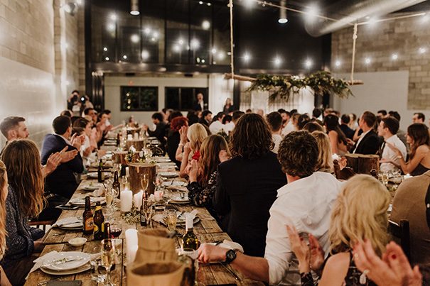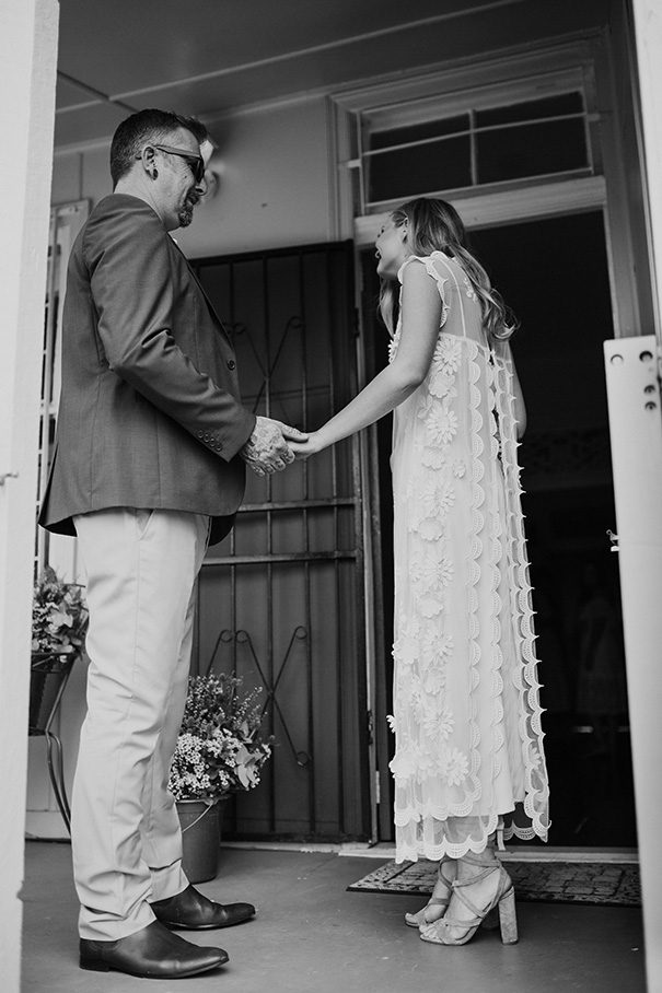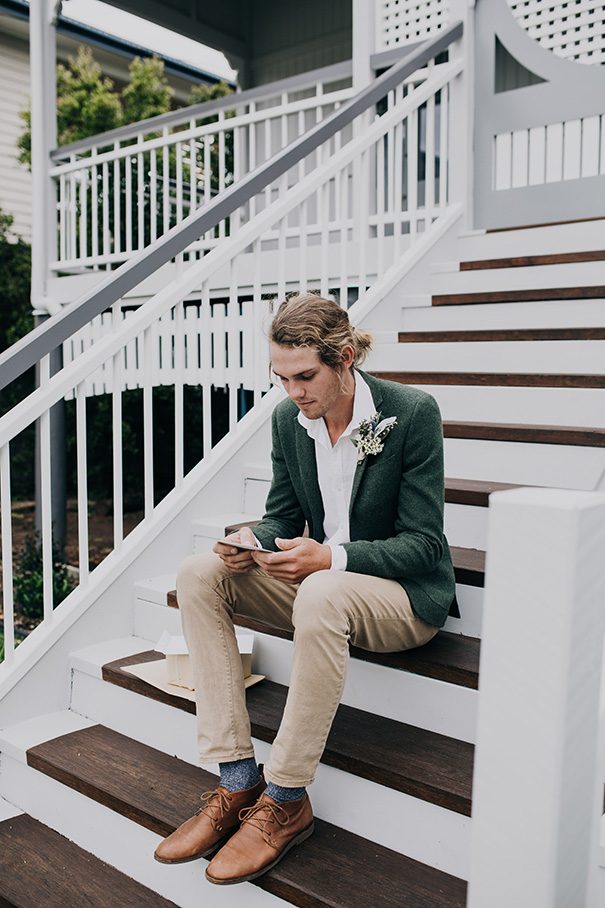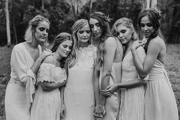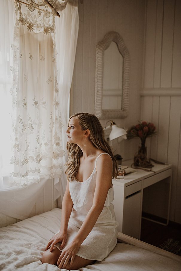 CREDITS Photographer Alice Mahran // Cinematographer Joel Tronoff // Florist The Village Flower Merchant // Ceremony Venue Pullenvale, QLD // Reception Venue The Joinery, QLD // Catering Chez Nous // Furniture Hire Hodge Podge // Sound Hire Brisbane Sound Group // Entertainment J and R Music // Rings Natalie Marie Jewellery // Bridal Gown Bride’s grandmother’s gown // Lingerie For Love of Lemons // Shoes Tony Bianco // Accessories Molten Store // Hair Infinity Hair // Makeup Kate Devlin // Groom’s Jacket ASOS // Groom’s Shirt and Pants Industrie // Shoes Rodd and Gun // Watch The Horse.