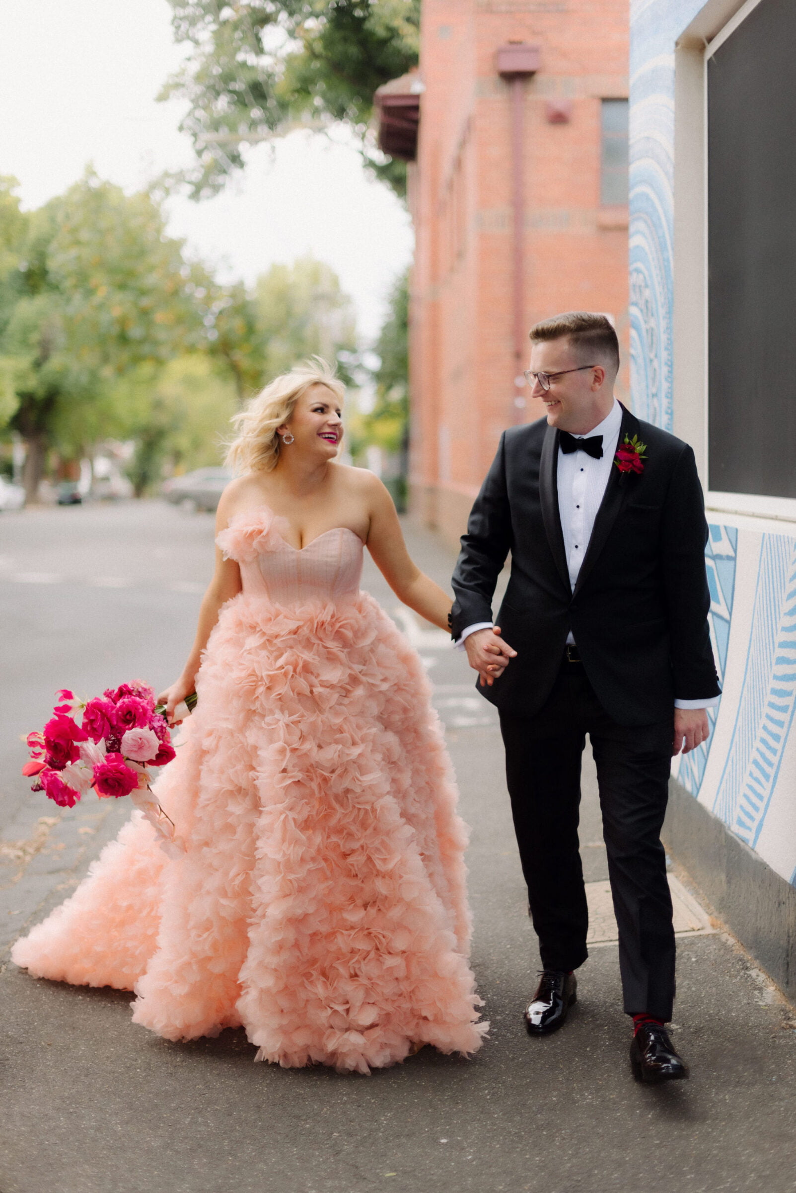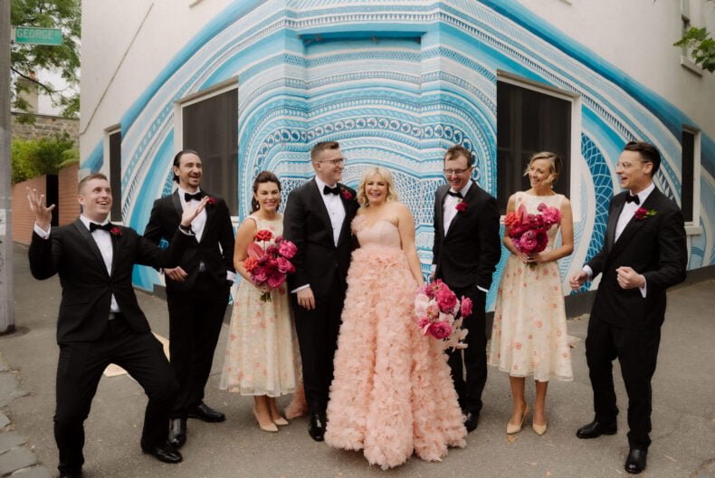 Once upon a time, in the land of Tinder, Tegan and Will caught each other’s eye. “We are still yet to agree on who ‘super liked’ who.” The couple of seven years got hitched at Melbourne’s eclectic hotspot, Rupert on Rupert. The conditions at this lively love-fest were prime for partying, with stellar celebrant Nat Sproal setting the good vibes in motion and One More Song DJs delivering the tunes. The bride was blushing head to toe in a Couture + Love + Madness gown that stole the show, pared with Bared Footwear shoes.