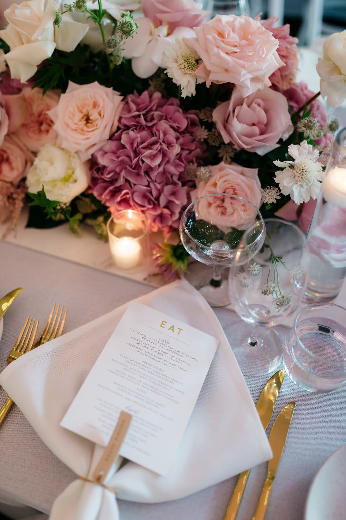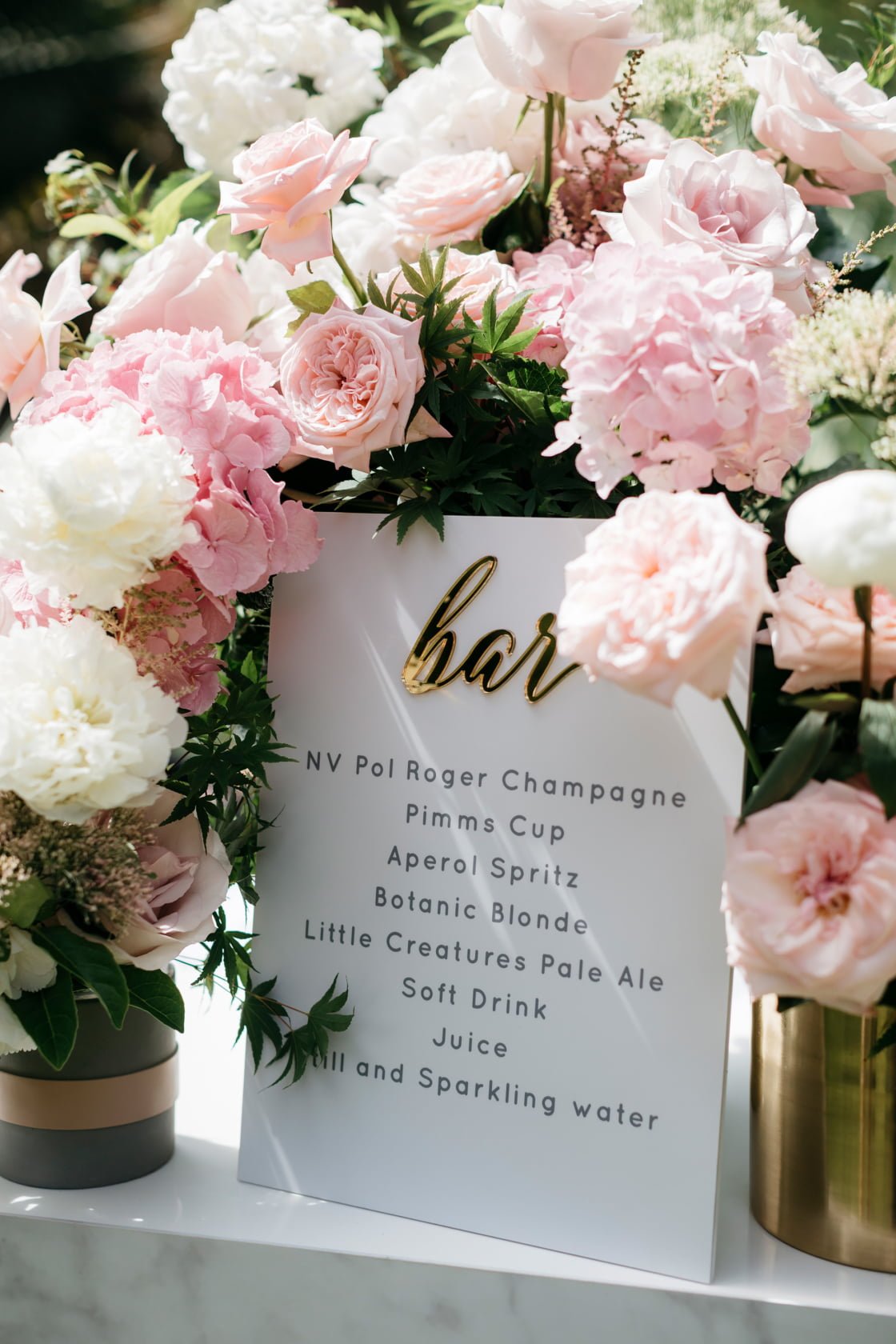 THE VIBE “The style of the wedding reflected the femininity of my dress with beautiful and organic arrangements made by Studio Botanic. Kiera kept it quite whimsical but also edgy and that’s where the marble, leather and gold came in. It was a perfect balance. We trusted Kiera and her staff to bring our dream to life!”