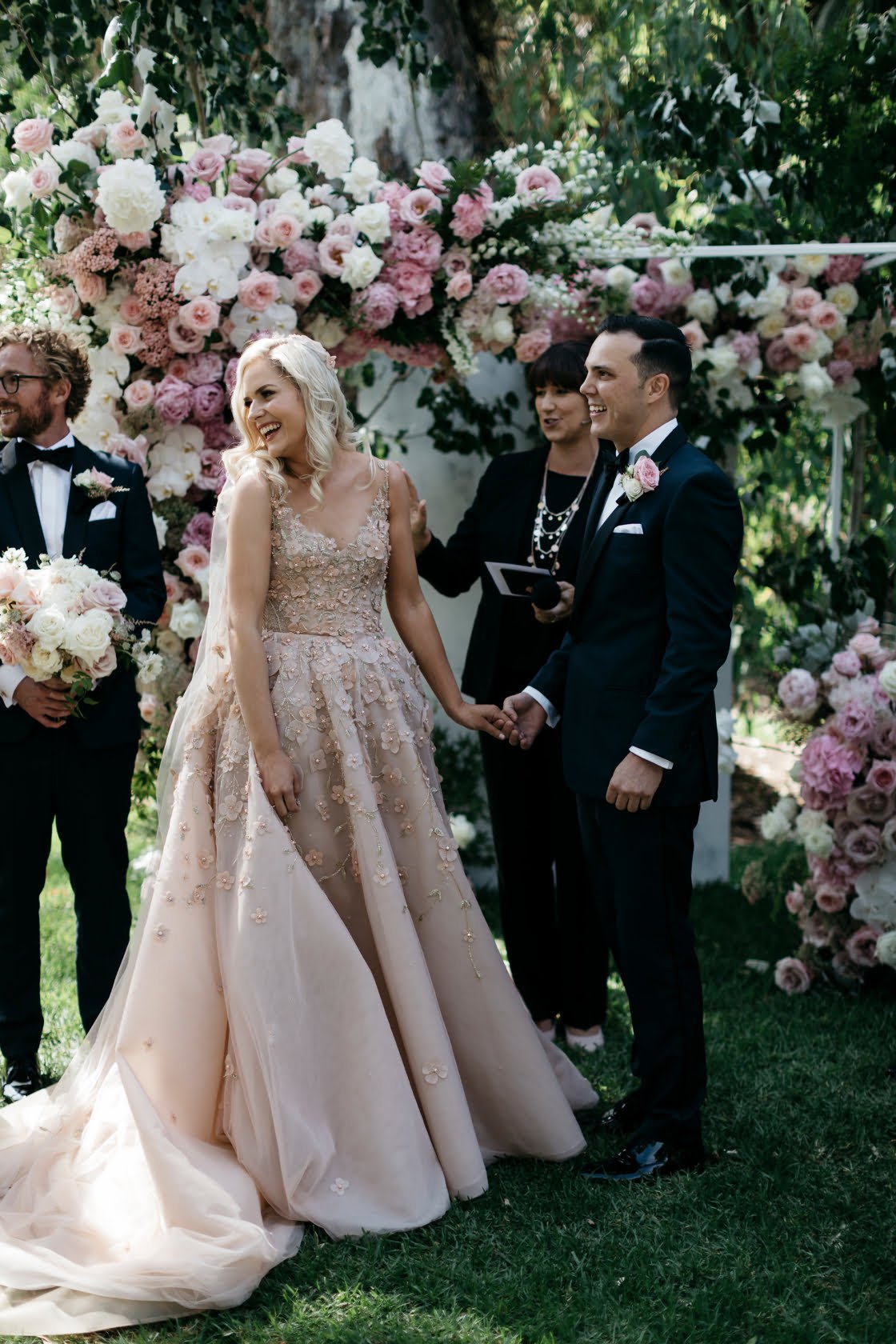 Six years ago, Joshua piggybacked Thomasina out of an Adelaide pub and the rest was history! Fast forward to the utterly glam nuptials and the duo promised each other a lifetime of fat Sundays, board games and endless love. A few of our faves were in attendance, making this peachy pink big day one to remember. The peeps over at Baker Boys Band provided tunes whilst Katie Harmsworth snapped up a storm. So, you better scroll down for her fab shots…