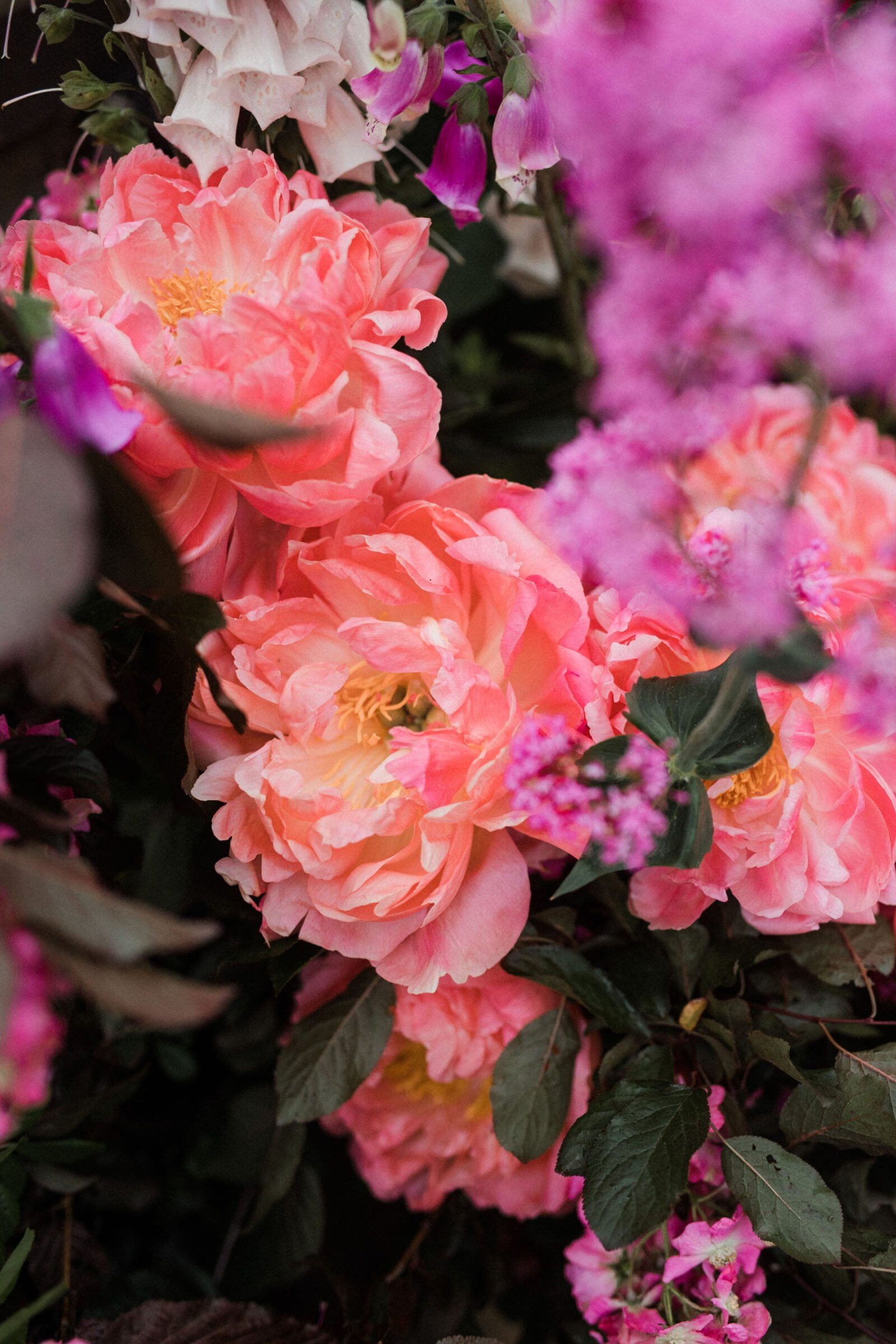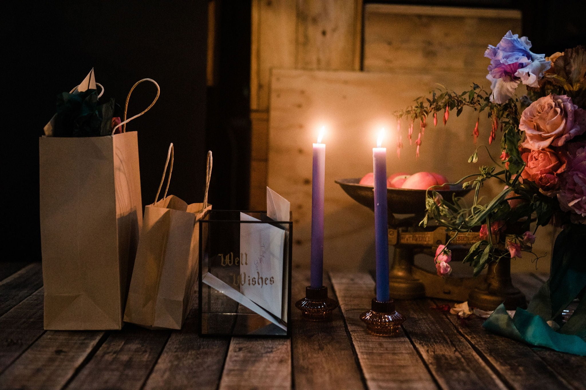 FAVE DETAILS “The flowers, both in the bouquet and in the table styling, were a real highlight for me. Eliza (This Natural World) created the most perfect, bright, rambling florals with seasonal flowers. They were an explosion of peonies, irises, roses, poppies and fuchsia. They just looked incredible up against the blue and purple candles and red velvet on the tables.”