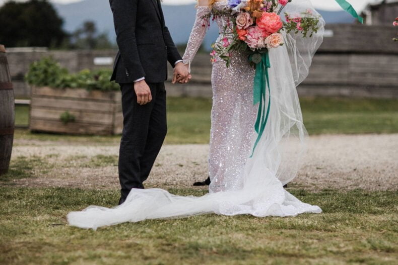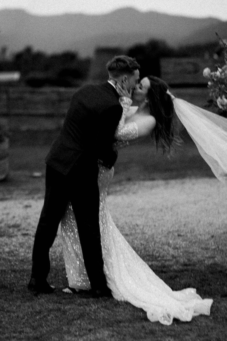 Together for eight years before saying ‘I do’, Tilly and Joe describe marriage as the “cherry on top of an already very deep commitment”. A testament to their cool, calm, collected attitude, the duo got engaged in a super sweet sunset moment amidst the chaos of house renos and an interstate move. The couple’s vision for the day was rustic, warm, and oh-so-romantic, infused with subtle gothic vibes. Even the weather got the memo, with the picturesque Huon Valley treating them to a cinematic sky show that set the scene just right. Cassie Sullivan was there to capture every dreamy detail (including that jaw-dropping bouquet). Take a scroll and hear from the newlyweds…