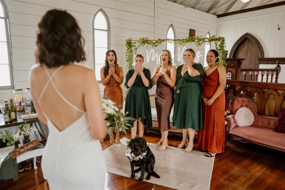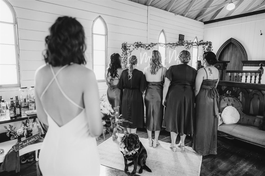 THE VENUE “Holy Red Deer Estate gave us the freedom to have our wedding the way we wanted it. We had only looked at other venues online but they either had max 100 guests, rules that we had to use their caterers or were just out of our budget. HDRE were so flexible and even have a manse onsite that sleeps up to 10 people, which was great for our bridal party and us the night of the wedding. It’s also a nice small town meaning all the accommodation was within walking distance for our guests. The main thing that lead us to choose HDRE though was that our beautiful labrador Indie was allowed to be at the venue with us and stay at the on-site accommodation. She’s been with me for 10 years and having her there with us was a non-negotiable.”