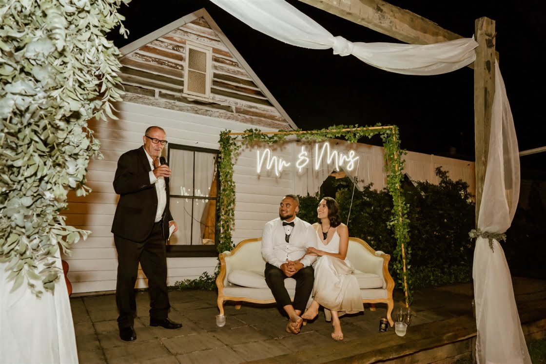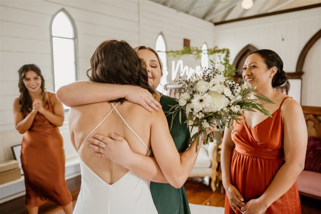 CONTRIBUTING VENDORS Photographer Hannah Redman Images Cinematographer Rozay Films On-the-day Co-ordinator I Do Crew Florist Ipswich Florist Stationery Paperless Post Ceremony & Reception Holy Red Deer Estate Catering Benz On Miller, That Food Van, The Esk Fruit Shop (ice cream cart) Wedding favours David Babore Illustrations (caricature artist) Hire Items Enchanted Weddings & Event Hire, Brandition, Kool Kombi & Bug Hire, Little Rum Runner, Aurora & Co Events, Brisbane Valley Hire & Sales Signage Designed by bride, printed at Officeworks Entertainment DJ Bawllin, Janice Falanitule Celebrant Pastor Luke Montgomery Rings (Pounamu/pendants) Mountain Jade THE BRIDE Gown Grace Loves Lace Robes Bed Threads Shoes Lulus Earrings Maori By Design (bone) Hair & Makeup Blush’d Brides Fragrance Ariana Grande Cloud Bridesmaid dresses Showpo, Esther & Co., Billy J, St. Frock Bridesmaid gifts Marc Jacobs Daisy, Molten Store THE GROOM Suit Van Heusen Shirt & Shoes yd. Bow tie Connor Watch About Vintage Groomsmen suits Van Heusen