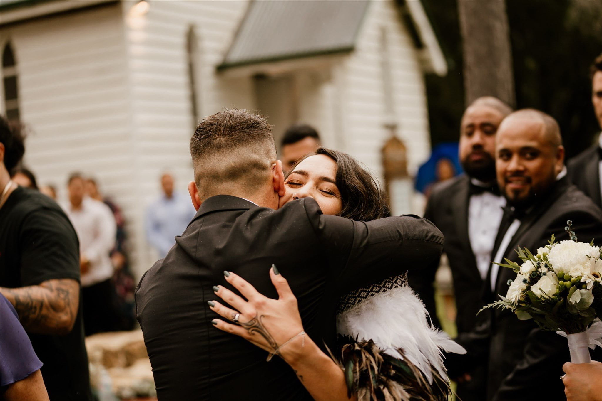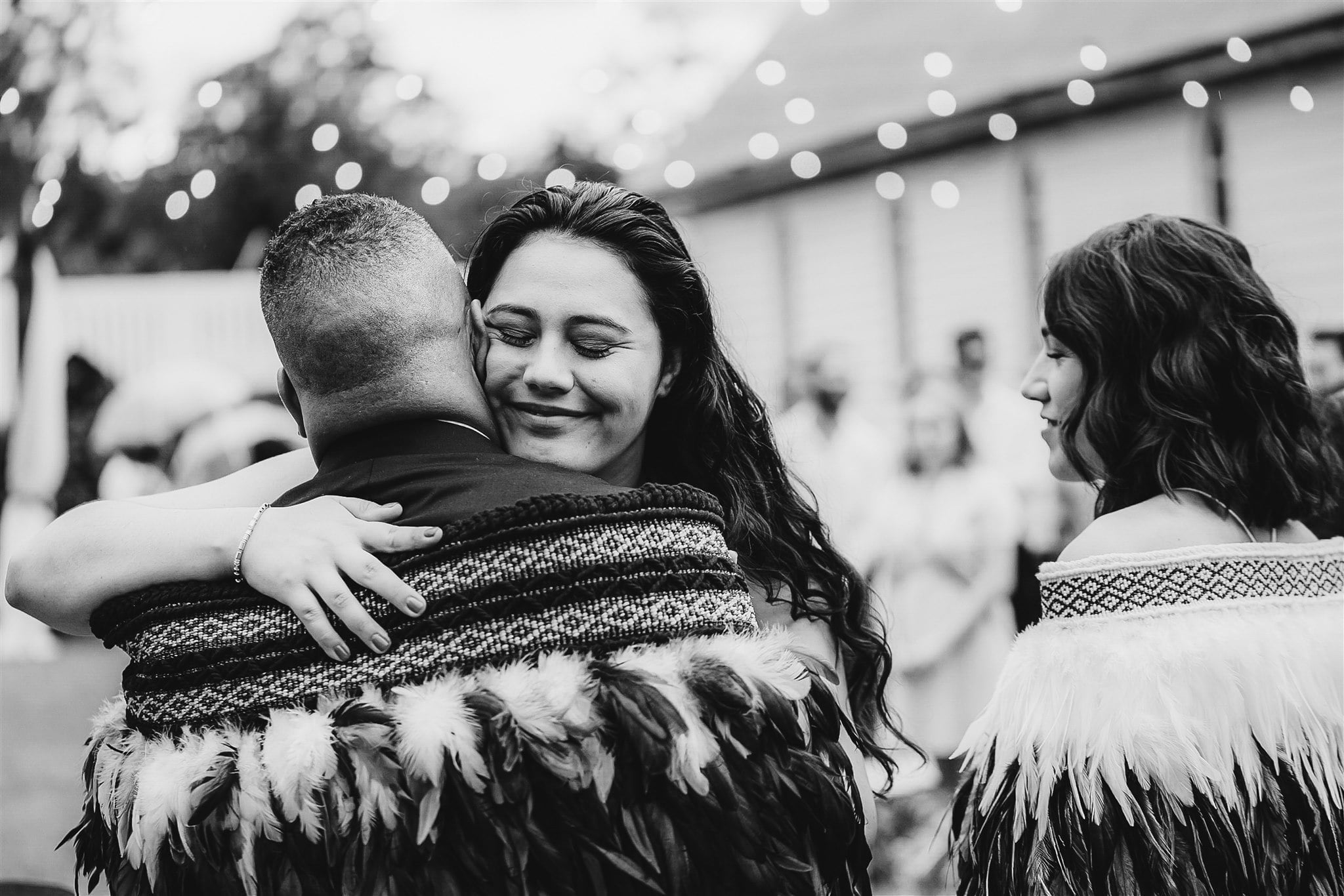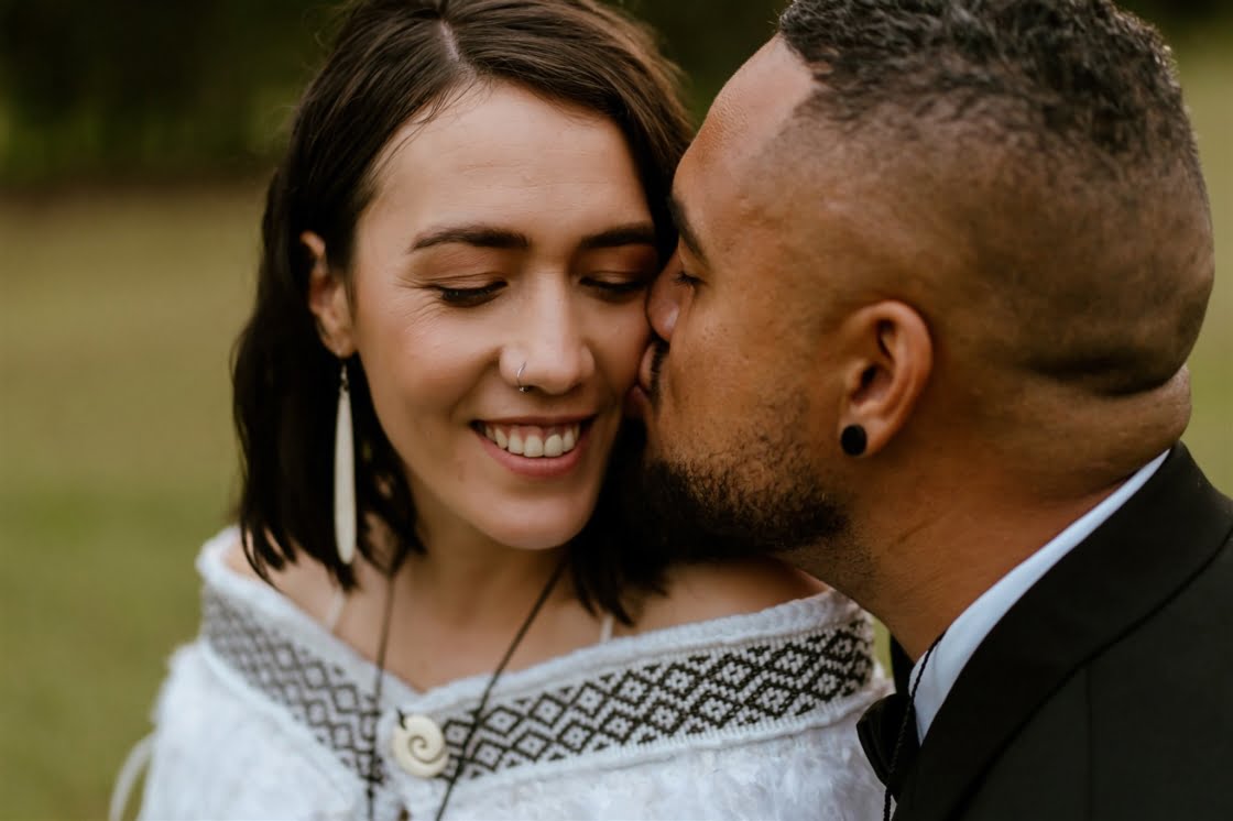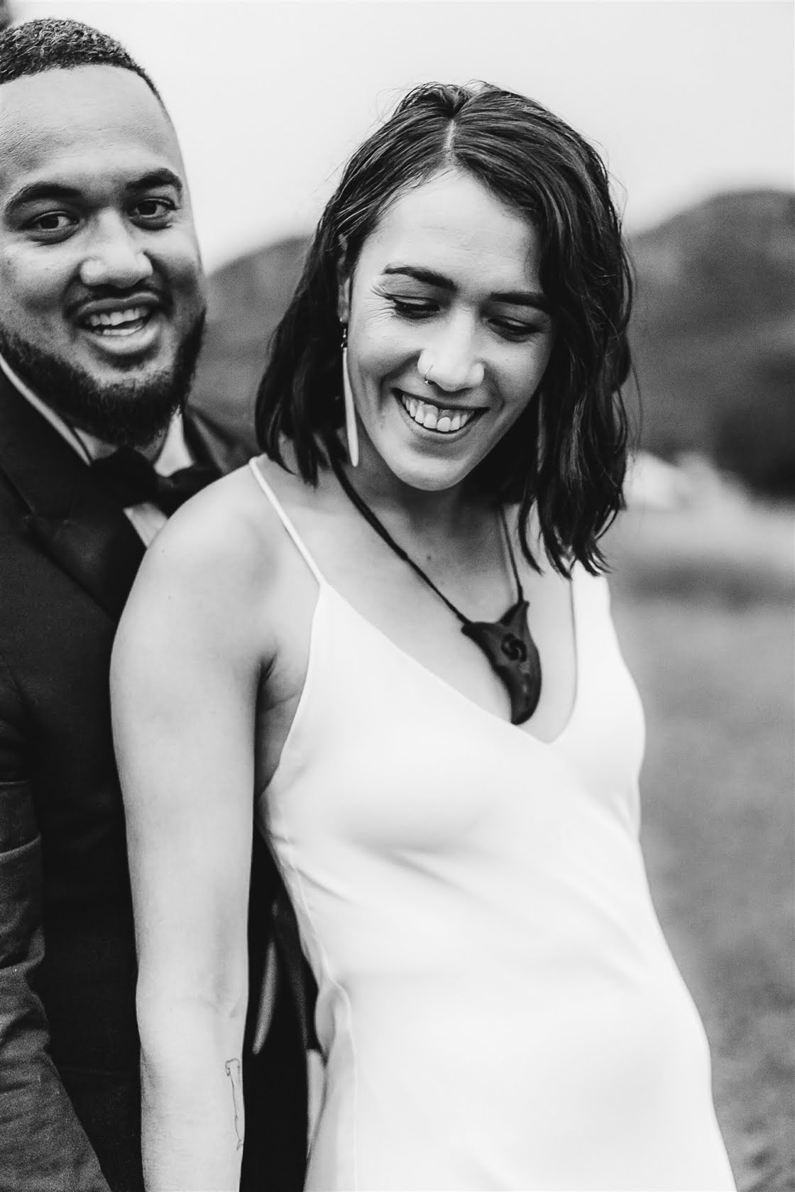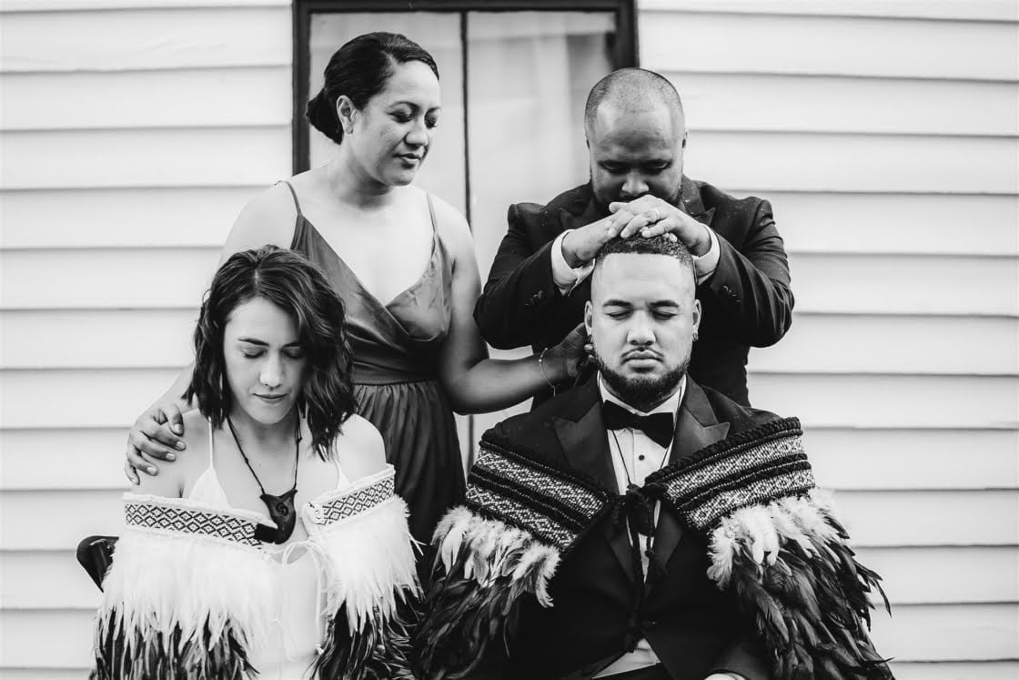 TAKE ON TRADITION “Our two favourite things were our custom pounamu (pendants) and kakahu (cloaks) that we exchanged on the day. Our pounamu were custom-carved back in New Zealand and tell the story of us both as individuals and together as a couple. We decided to exchange these as we had decided the get traditional ta moko tatau (tattoo) as our wedding bands but still wanted something to wear and exchange. Before we said our vows we had our pounamu passed around to guests to ‘warm’ by rubbing them. The jade absorbs your natural oils and in a way the oils are polishing it. It means that everyone who touches our pounamu is with us in some way. Our traditional kakahu (cloaks) were extra special as they were woven by our mums. They are normally presented at the end of the ceremony as a final declaration of love, and symbolise each of us wrapping and protectecting our new spouse.”