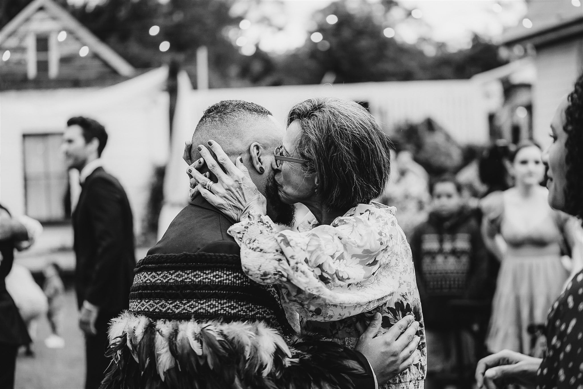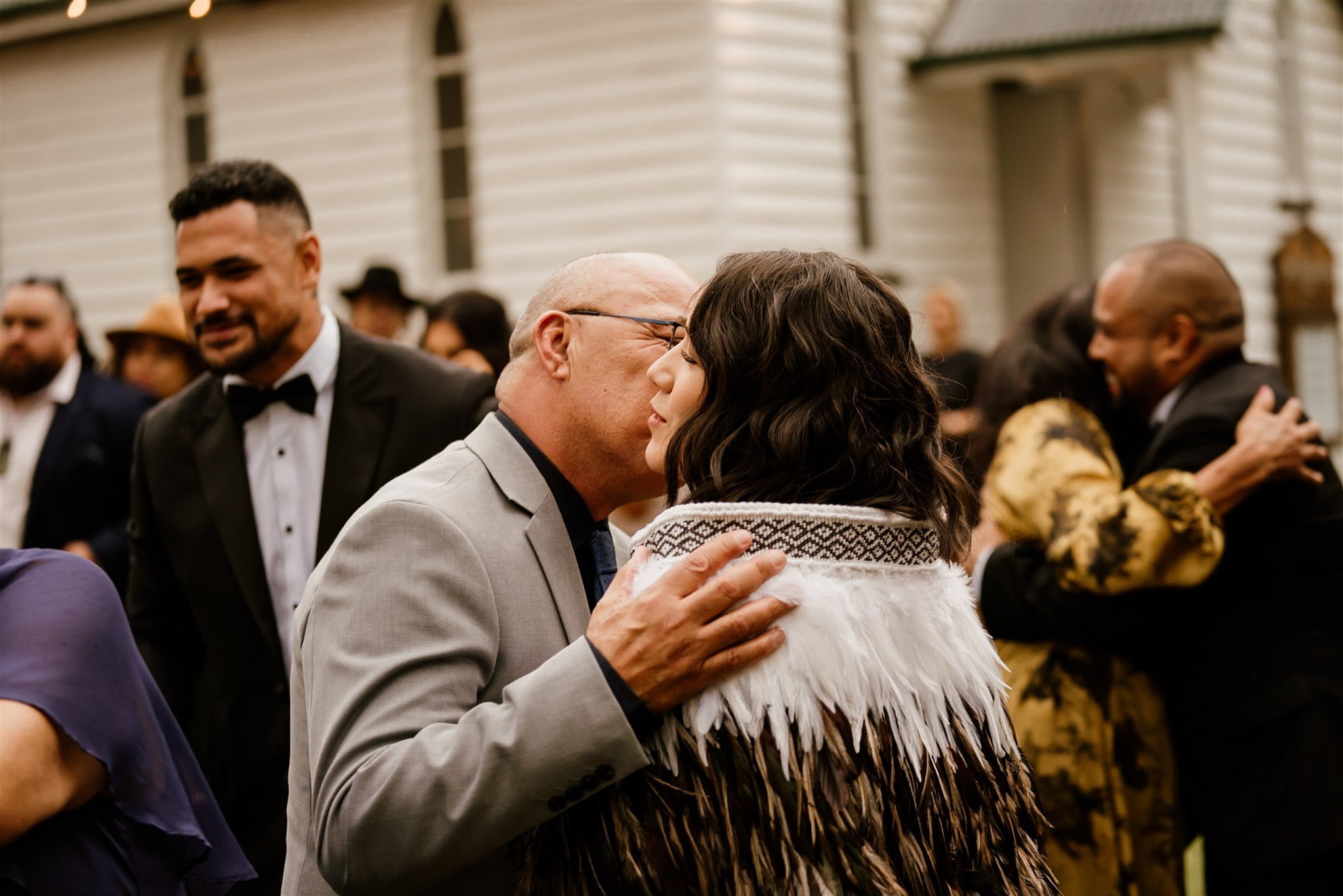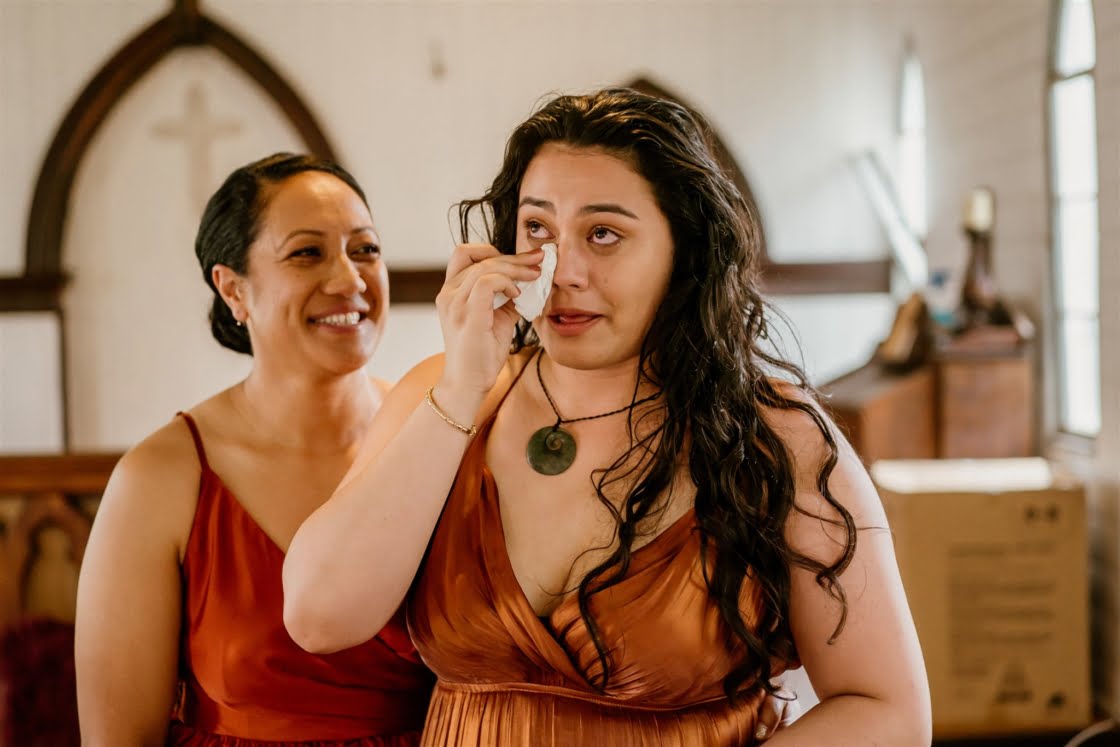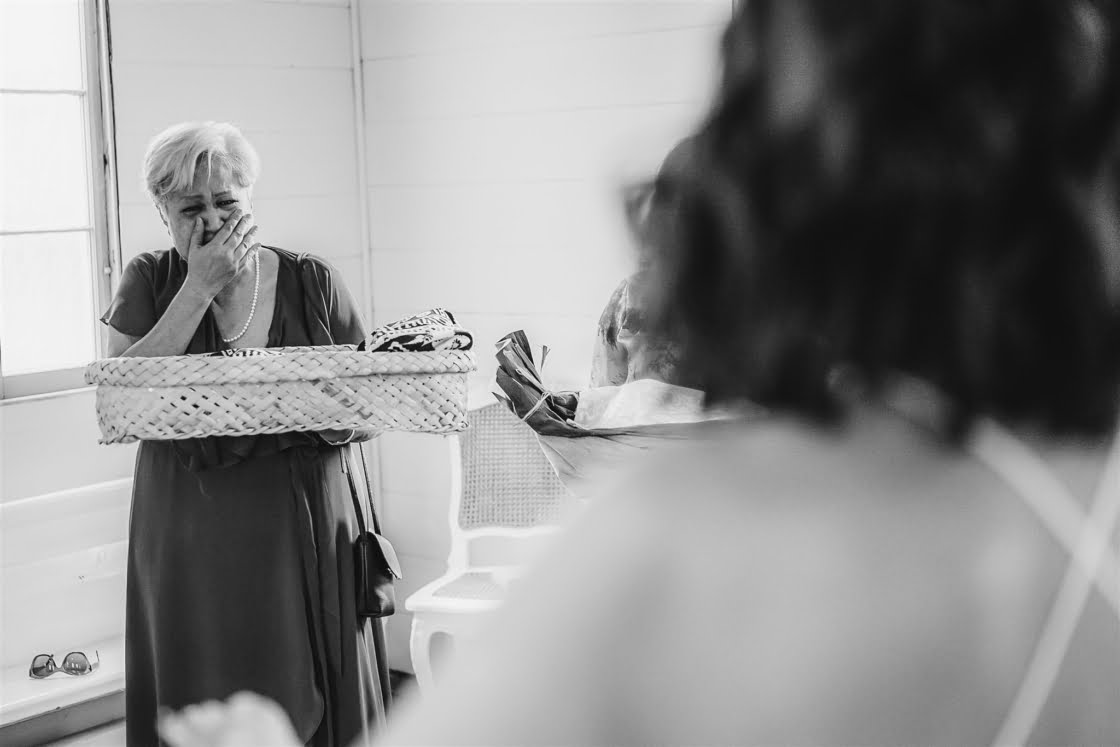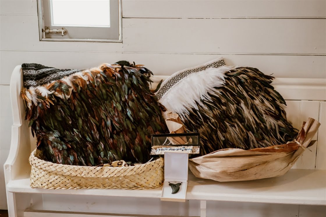TAKE ON TRADITION “Our two favourite things were our custom pounamu (pendants) and kakahu (cloaks) that we exchanged on the day. Our pounamu were custom-carved back in New Zealand and tell the story of us both as individuals and together as a couple. We decided to exchange these as we had decided the get traditional ta moko tatau (tattoo) as our wedding bands but still wanted something to wear and exchange. Before we said our vows we had our pounamu passed around to guests to ‘warm’ by rubbing them. The jade absorbs your natural oils and in a way the oils are polishing it. It means that everyone who touches our pounamu is with us in some way. Our traditional kakahu (cloaks) were extra special as they were woven by our mums. They are normally presented at the end of the ceremony as a final declaration of love, and symbolise each of us wrapping and protectecting our new spouse.”
