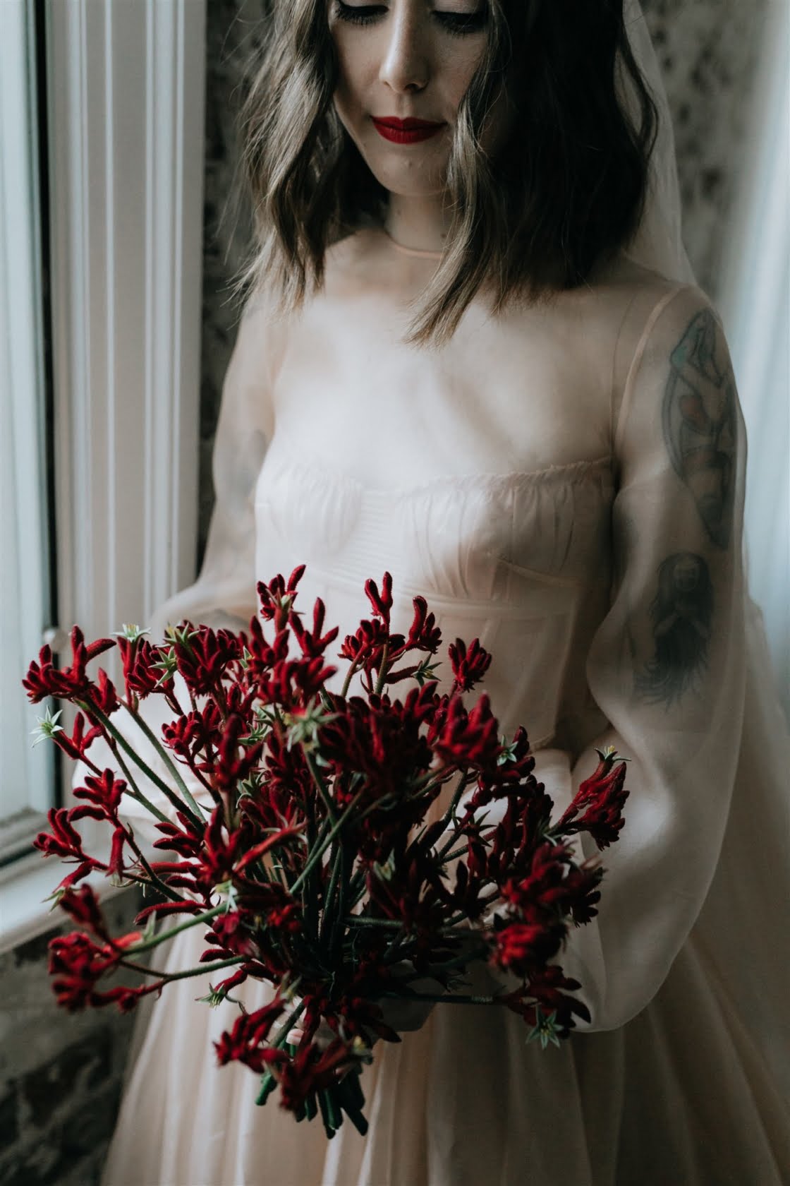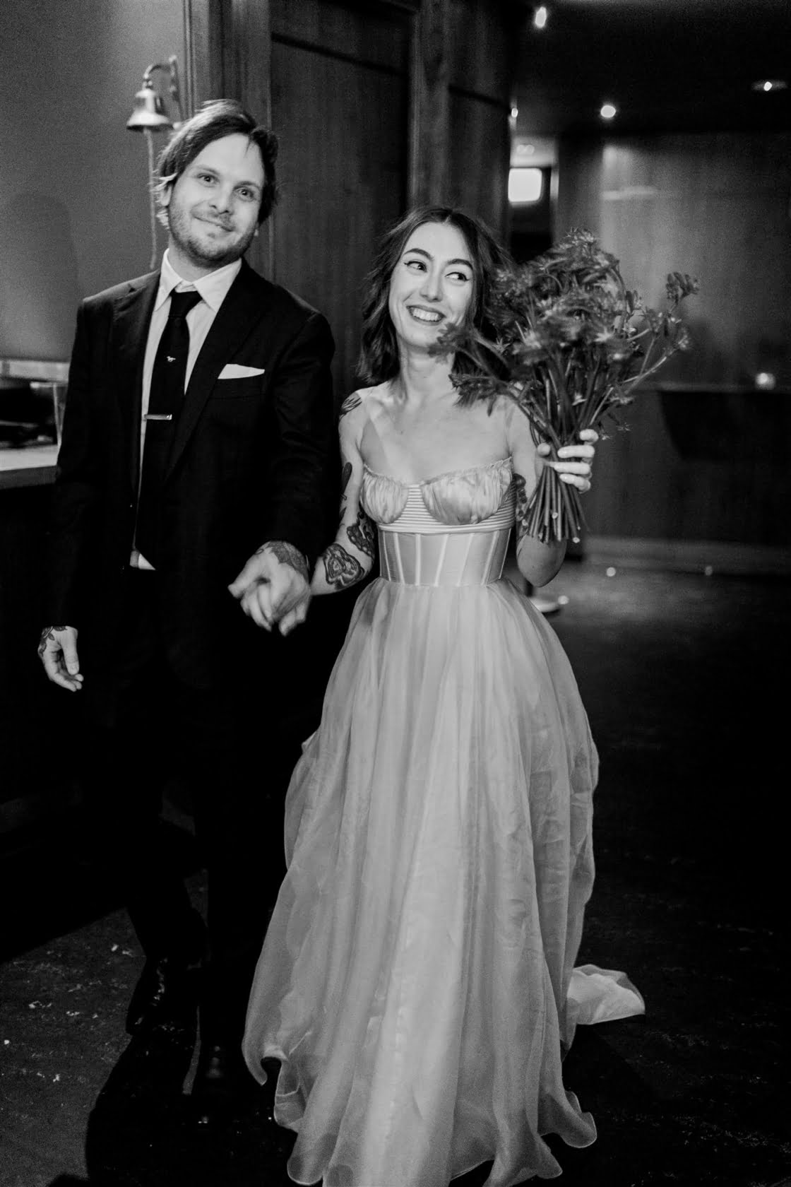 CONTRIBUTING VENDORS Photographer Lei Lei Clavey Cinematographer Nick Hodgskin (Friend) Florist Bess Paddington Stationery & Wedding Website DIY (Groom) Printer Fast Printing Ceremony Art Gallery NSW Reception Golden Age Catering Urban Cooking Collective via Golden Age Other Desserts Messina via Golden Age Entertainment Duke Music (Trio & DJ) via Event Entertainers Celebrant Grant Hoyle (Pastor) via Glow Engagement Ring Grew & Co Wedding Rings Thirteen Feet Tattoo Transport Sydney Driver Accommodation &Robes The Old Clare Hotel THE BRIDE Bridal Gown & Veil J. ANDREATTA Shoes Spring Court Hair & Makeup Kim Pham via The Future Mrs THE GROOM Suit, Shirt & Tie M.J. Bale Shoes Country Road