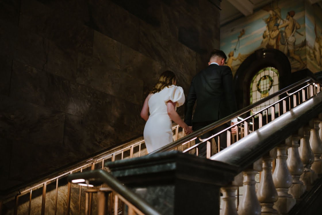 “We had planned our dream wedding at a Margaret River winery back in our home state of Western Australia for 7 November 2020. Everything was locked in and ready to go. However, with border closures showing no signs of easing, we had to make the decision to postpone.” So an elopement it was to be, this time keeping things much simpler: “a ceremony at the State Library Victoria followed by dinner at our favourite restaurant in the city, City Wine Shop, celebrating with eight close friends.”