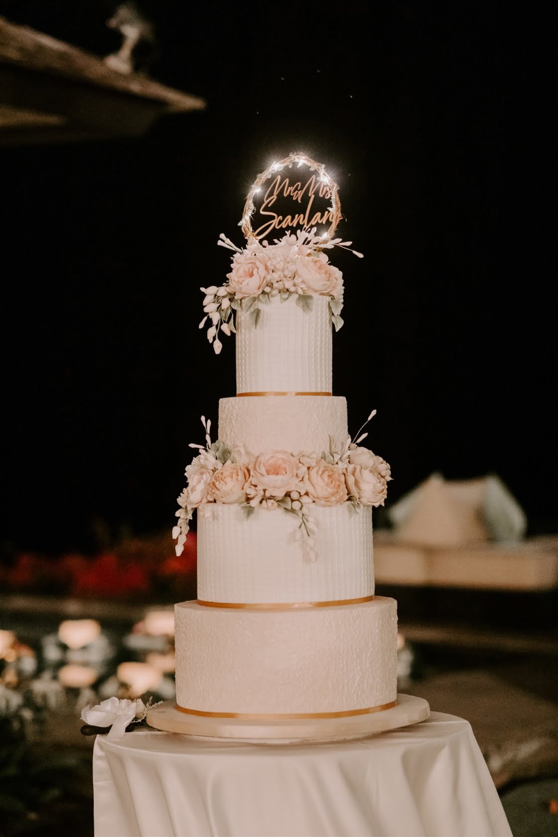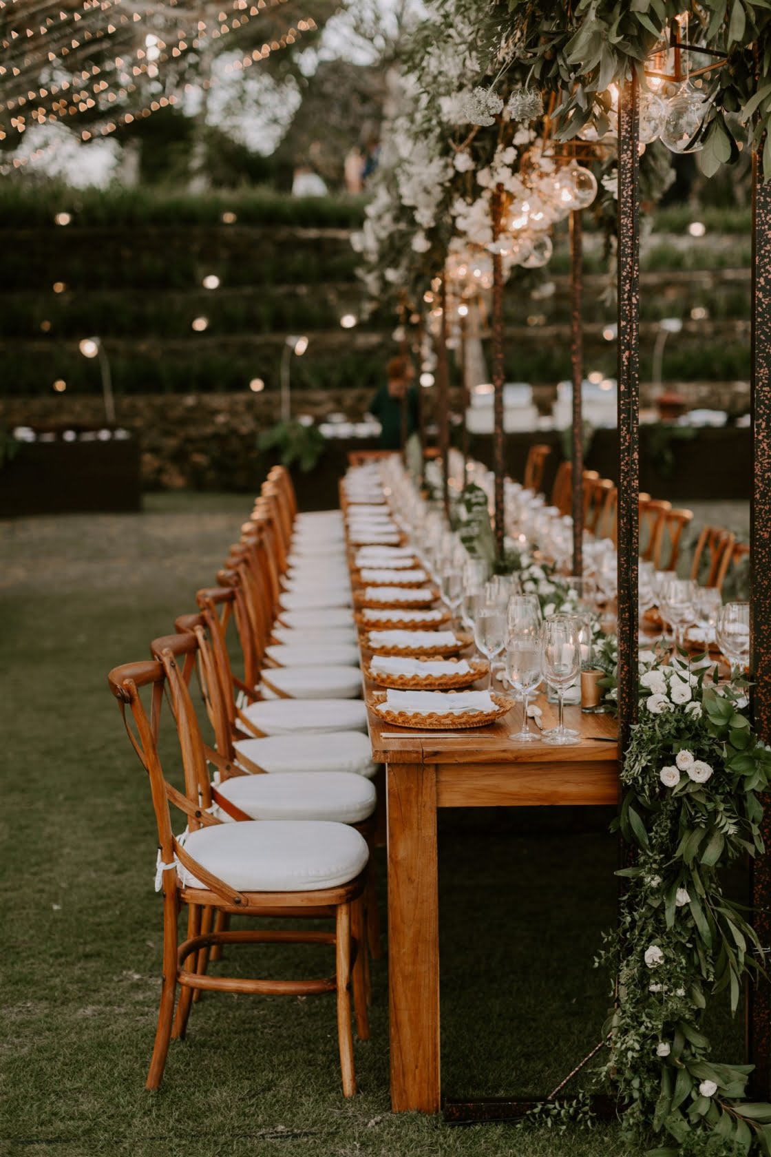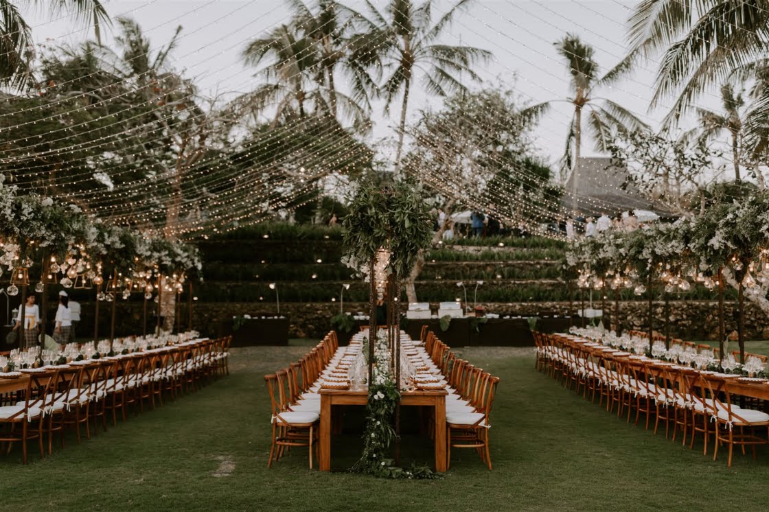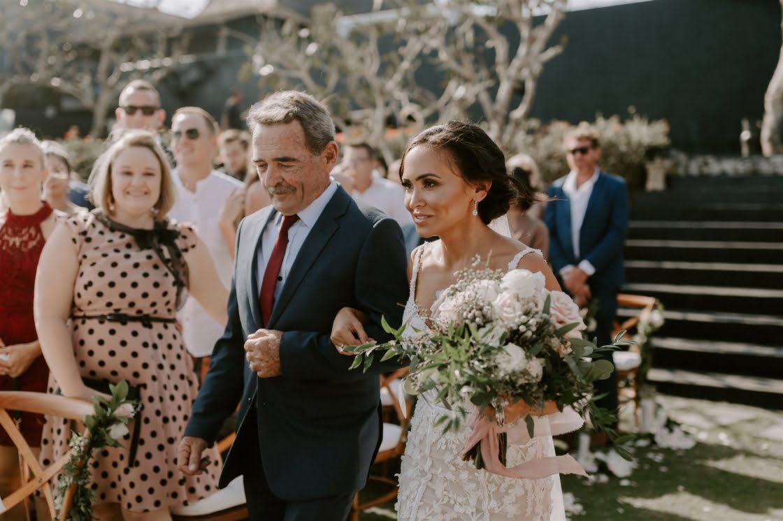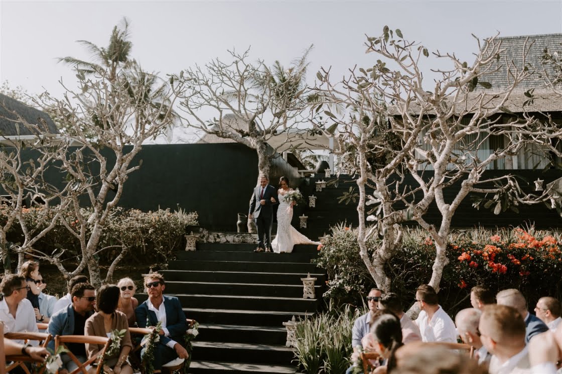 CONTRIBUTING VENDORS Photographer Janneke Storm Videographer Wilson Archer Films Event Planner Bali Dream Day (Yesha Yeshivia) Stylist, Signage & Florist Bali Event Styling Place Cards & Stationary Loco Studio Ceremony & Reception Khayangan Estate Catering Bali Catering Company Cake LeNovelle Cake Cake Topper LilyCraftAu via Etsy Hire Items Bali Event Hire Lighting & Sound Hire TwinBrother Sound & Lighting Entertainment Silaen Music Rings Xennox Diamonds THE BRIDE Bridal Gown & Veil Pallas Couture Hair Comb Luelle via The Iconic Robes & Bridesmaid Gifts Fred and Charlie Shoes Christian Louboutin Hair Glo Makeup Zoe Koritsas Bridesmaid Dresses Asos THE GROOM Suit, Shirt & Shoes Clay Rondo Cufflinks Danique Trends via Etsy Groomsmen Suits Clay Rondo Groomsmen Gifts Echt It Studio via Etsy