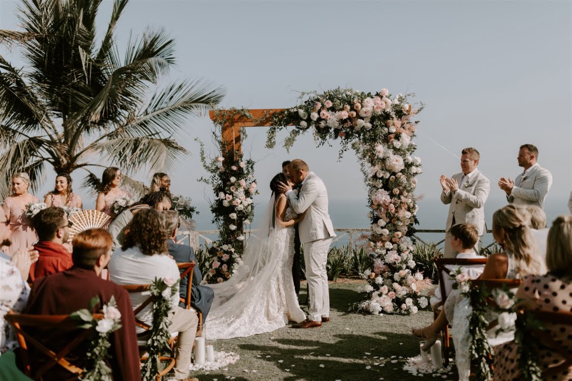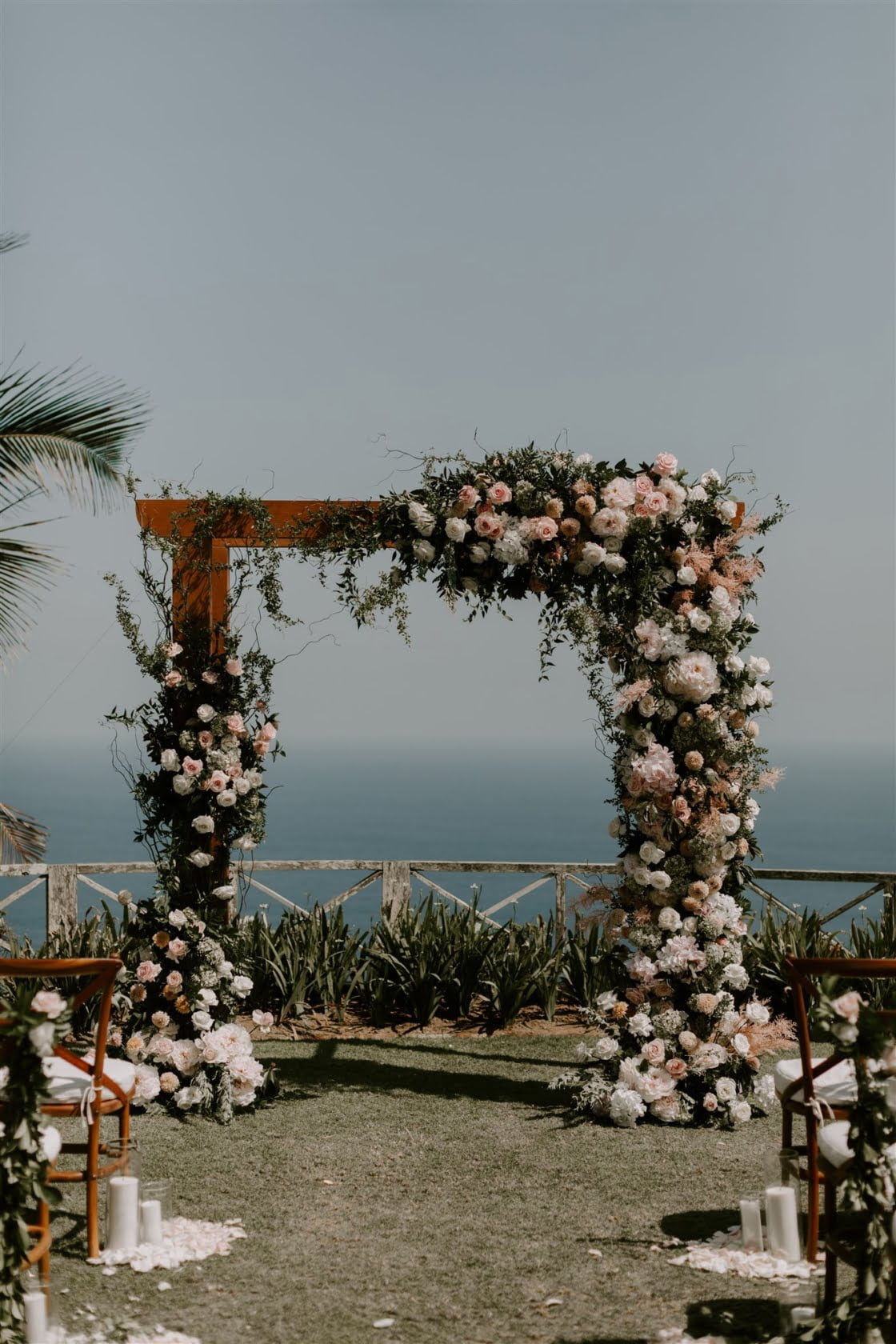 Vanessa and Steve took their passion for a garden wedding, flew it to Bali and injected it with a topical vibe, all before perching it on a cliff. The result? All kinds of wonderful. Whilst we might not be able to nip across the oceans to soak up some rays like these two, we can most definitely enjoy the phenomenal styling and loved up snaps, courtesy of lens lady Janneke Storm. So, hop to it! Scroll down for some fairy light shrouded delight…