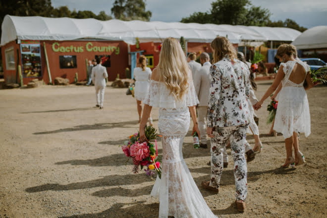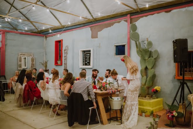 LITTLE LOL “Navigating through a cactus farm without injury was quite the task. Poor Elsa, our photographer, had to learn the hard way that shooting amongst cacti comes with a high risk – within 10 minutes of shooting us after our ceremony she was bleeding! She then end up with a cactus stuck to her foot at one point, she was fine, but gosh it was hilarious! The dance floor was also hilarious. If someone wasn’t doing the limbo or the worm, another was on someone’s shoulders with a bottle of tequila in their hand. It was wild. Our friend Dom definitely set the floor on fire with his knee slides and disco moves, or as we like to say Dom’s hips don’t lie!”