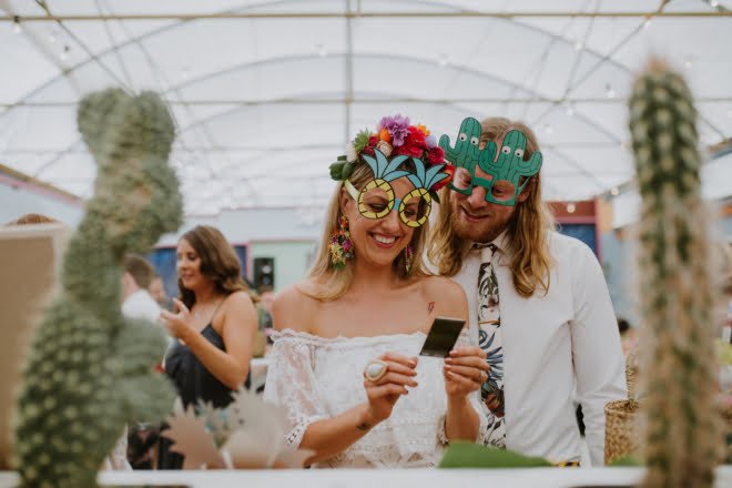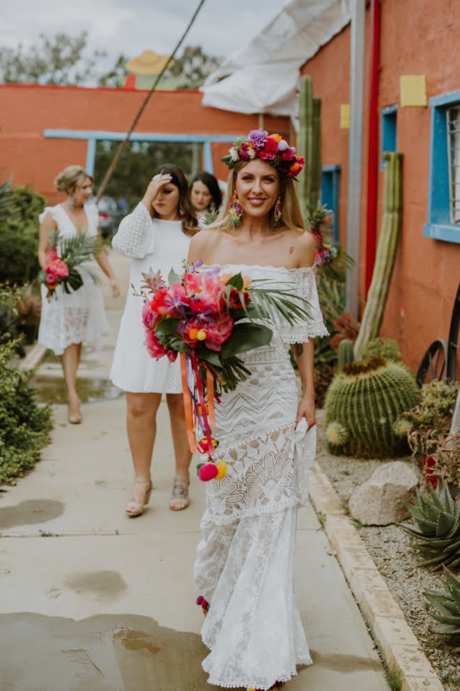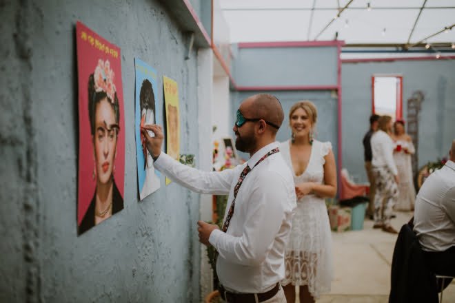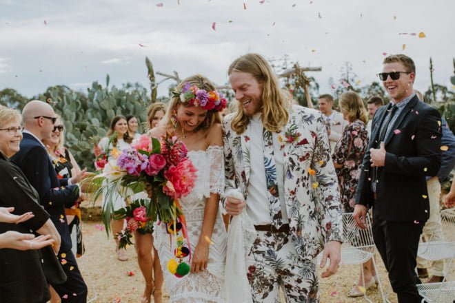 Sometimes we see a wedding that truly highlights the couple’s personalities, every detail speaks of their quirks, loves, passions and vibes. And that certainly rings true for Vic and Coz. “We both love all things tropical and fell madly in love with Mexico, because of its amazing food, culture and colourful charm, says the bride, who wore a Grace Loves Lace gown. Our house is filled with cacti, pineapple and framed Frida Kahlo prints, we both have pineapple tattoos and we eat tacos weekly (if not more)!” You’re not alone on the Taco’s guys! Scroll down for every detail, captured by photographer and HM Directory Vendor, Elsa Campbell