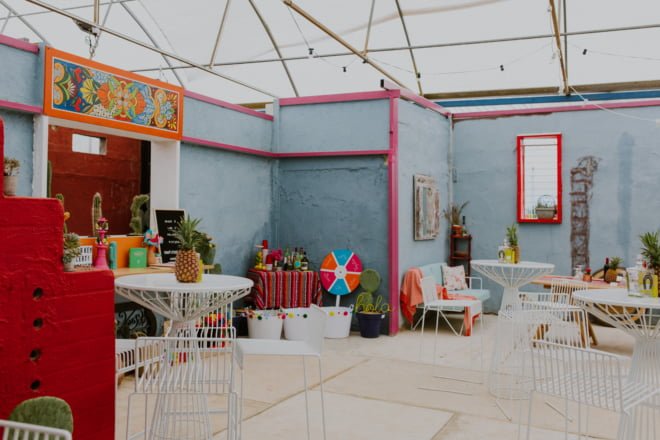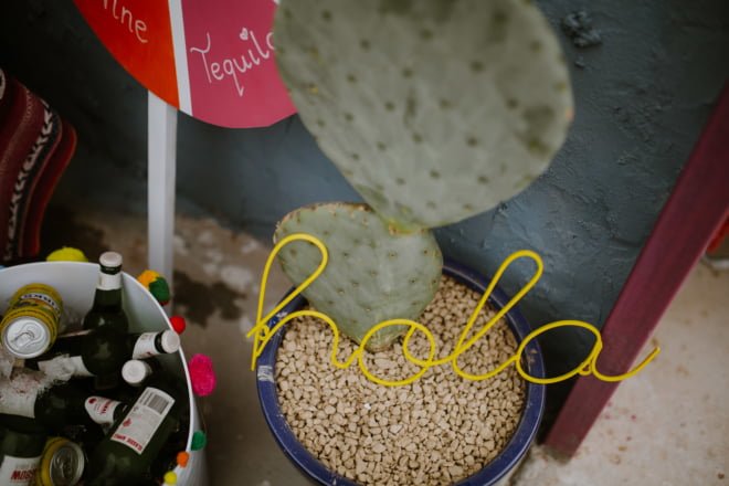DIY “The list really is endless so we’ll just mention our fav projects. I made the pompom garland for the arch and attached leftover pompom’s to my shoes to add that personal flair. Colin made ‘I love you like Kanye loves Kanye’ coasters, place cards, invitations, save the dates, wine labels and ‘pin the tail’ games. We also used a Polaroid ‘snap, stick, sign’ station instead of a photo booth, along with a guest book made with scrapbook paper for guests to slap their hilarious pics in. There’s plenty more to name like hoarding a dozen of empty Tequila bottles for 12 months+ but let’s leave it at that. Haha.”