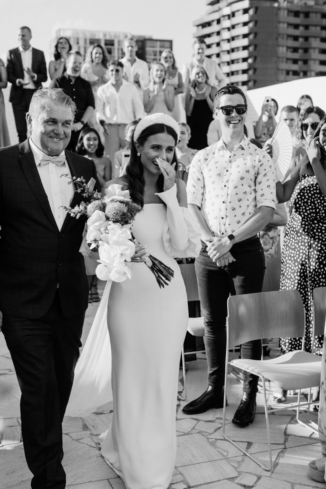 MEMORABLE MOMENT “Quiet reflection before the day started with my maid of honour and sister. We drank coffee and had a beautiful breakfast at The Calile and spent time journalling, I just felt so much peace and excitement. Another one of my favourite moments was just stopping and being present with Matt and our amazing videograpahy/photography team, Milk and Honey Creative in the tunnel area at The Calile Hotel in between the ceremony and reception.”