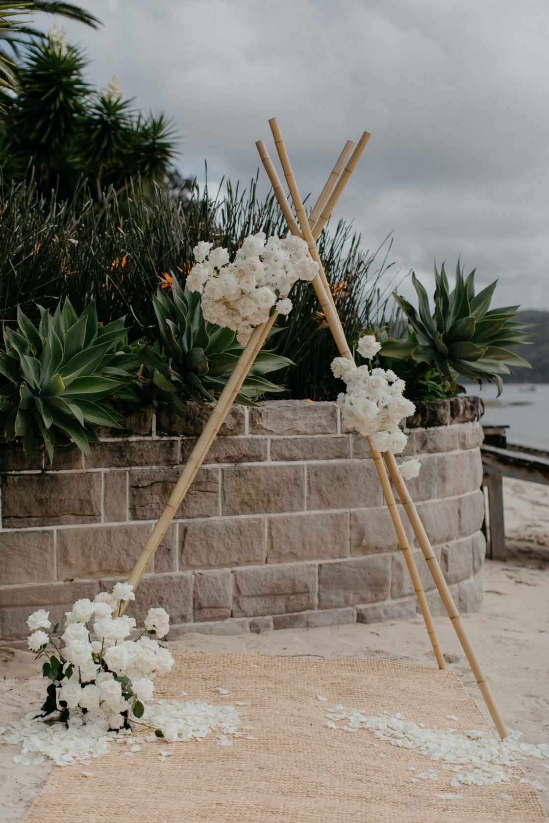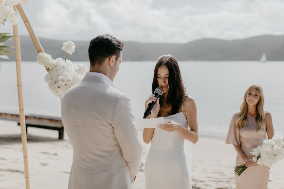 CONTRIBUTING VENDORS Photographer Blaise Bell Ceremony Stylist Styled by Her Reception Stylist Honey Lane Florist My Violet Stationery Kathryn Green Ceremony Venue South Station Beach Reception Venue & Catering Jonah’s Cake With Love She Bakes Entertainment Rebekah Harp (ceremony), The Graduates (reception) Rings Sarah & Sebastian Transport TNA Bus Hire, Sydney Mustangs THE BRIDE Dress Prea James Bridal Bridal Boutique Hope x Page Veil J.Andreatta Shoes Windsor Smith Earrings Fairley Hair & Makeup Suukha Studio Bridesmaid Dresses Shona Joy THE GROOM Suit M.J. Bale Shoes Aquila Watch Rolex Barber Kingzman Groomsmen Suits M.J. Bale