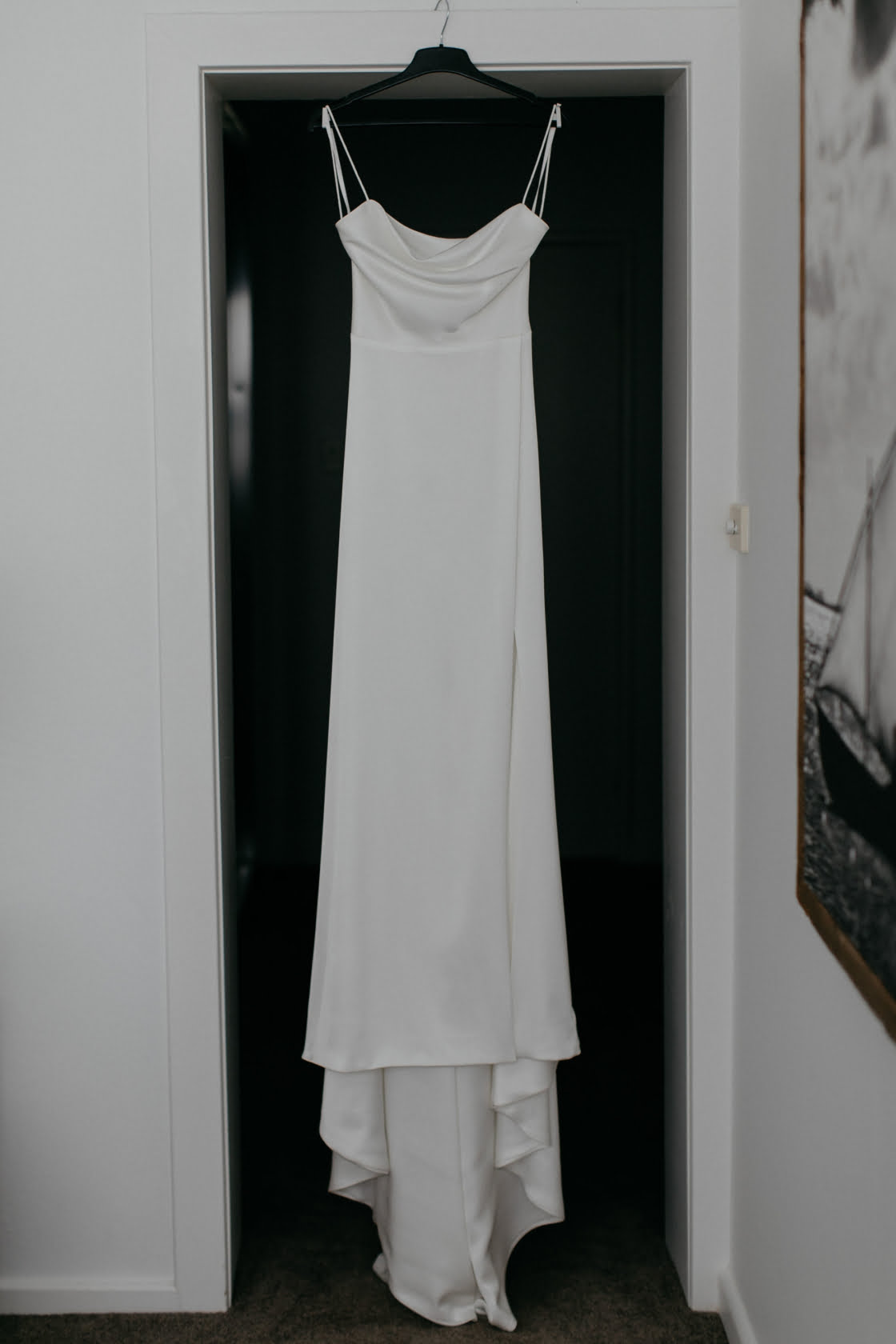 THE DRESS “I went to a few different bridal boutiques and found my Prea James Bridal gown at Hope x Page, seven months before the wedding. It was the most comfortable dress I tried on out of them all and I couldn’t stop giggling and dancing around the shop. Prea did it in silk for me and it moved beautifully!”