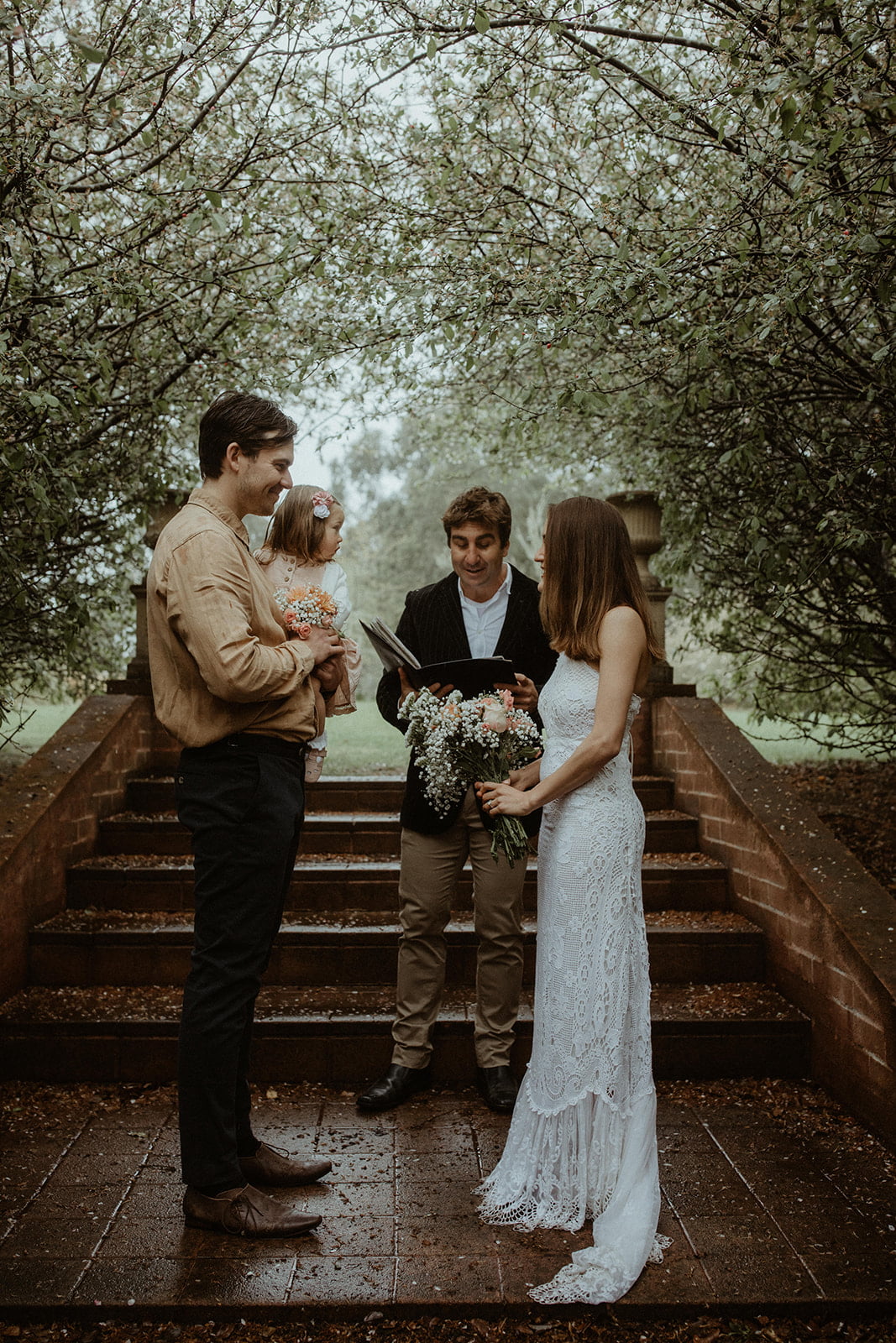 Opting to skip the “engagement part”, Jocelyn and Tom tied the knot just six weeks after they decided to “do this thing!”. They went for a low-key “family get together” vibe and it was the moody Kangaroo Valley that set the scene for this vintage garden party. Think home-cooked food, DIY florals and a warm and intimate guest list of eight. The day was so relaxed that the couple were still in their pyjamas when their guests arrived. Goals? Mhm. Scroll down to catch more gorgeous snaps from HM faves, Corinna & Dylan
