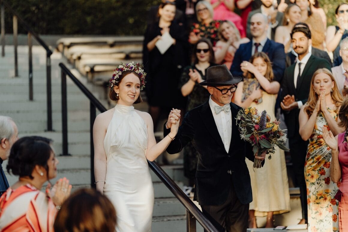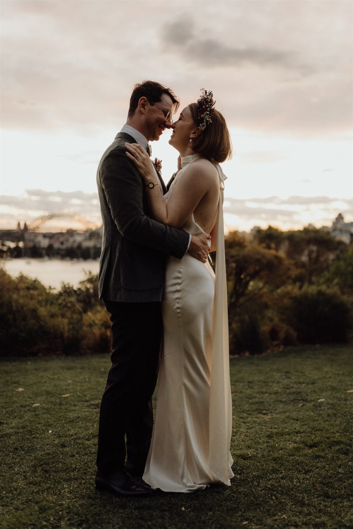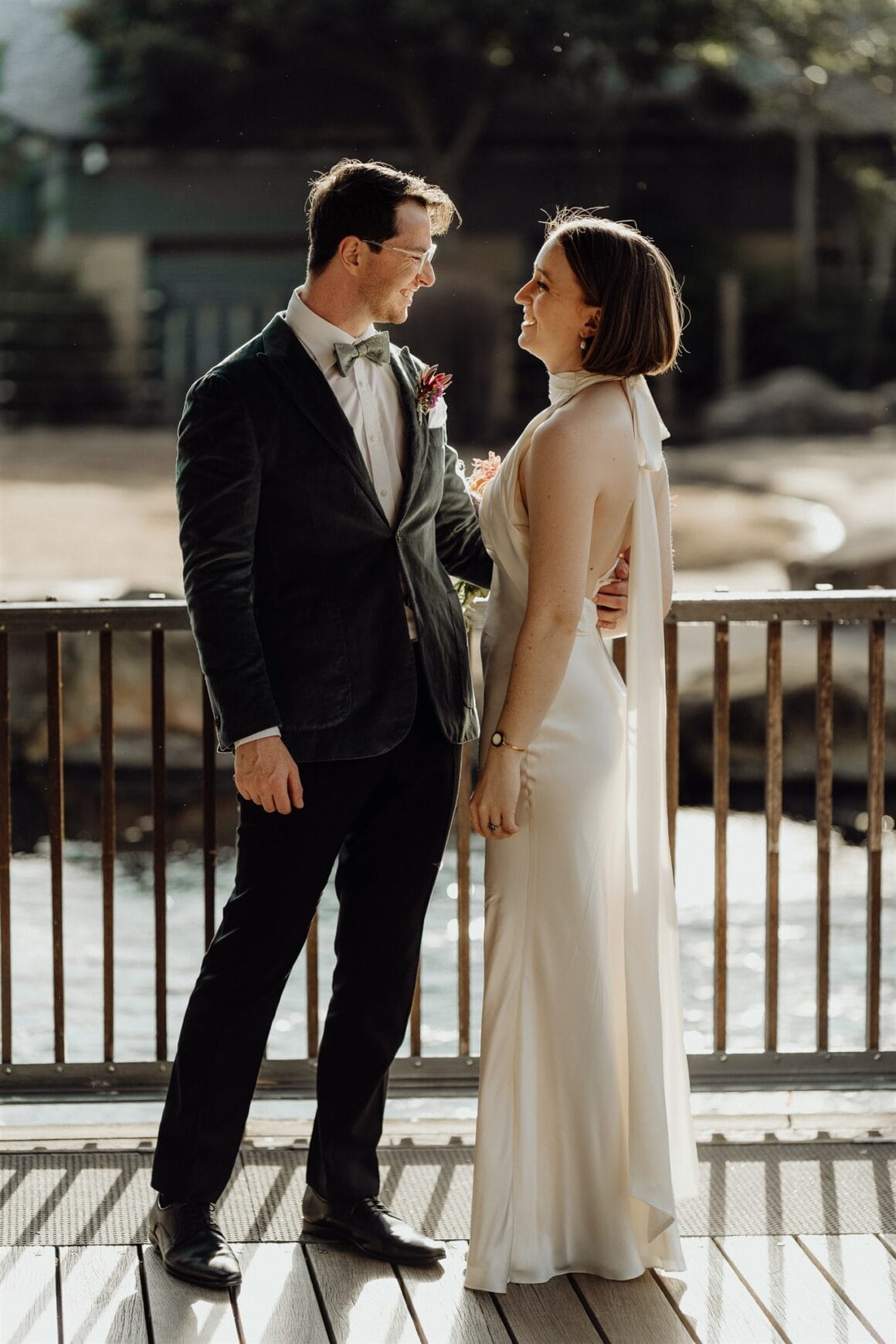 MEMORABLE MOMENT “We had a first look and three or so hours of photos in Bradley’s Head and the zoo with our bridal party (our siblings), which was super fun, and felt very personal and special. It was so nice to have time together in the day, which was otherwise a bit manic, and walking through the zoo in our formal wear was very entertaining. The highlight was definitely our ceremony, though. There was a perfect sunset, and the atmosphere was just magic. We were both in tears almost immediately, and it was incredibly moving.”