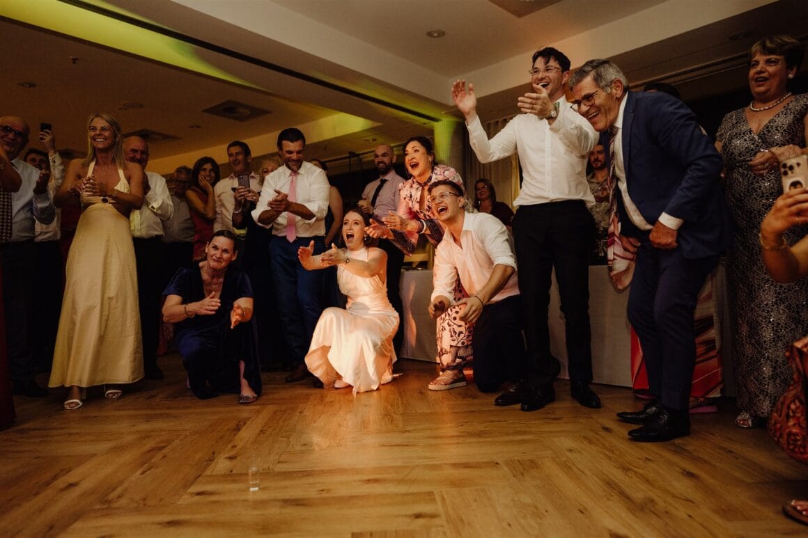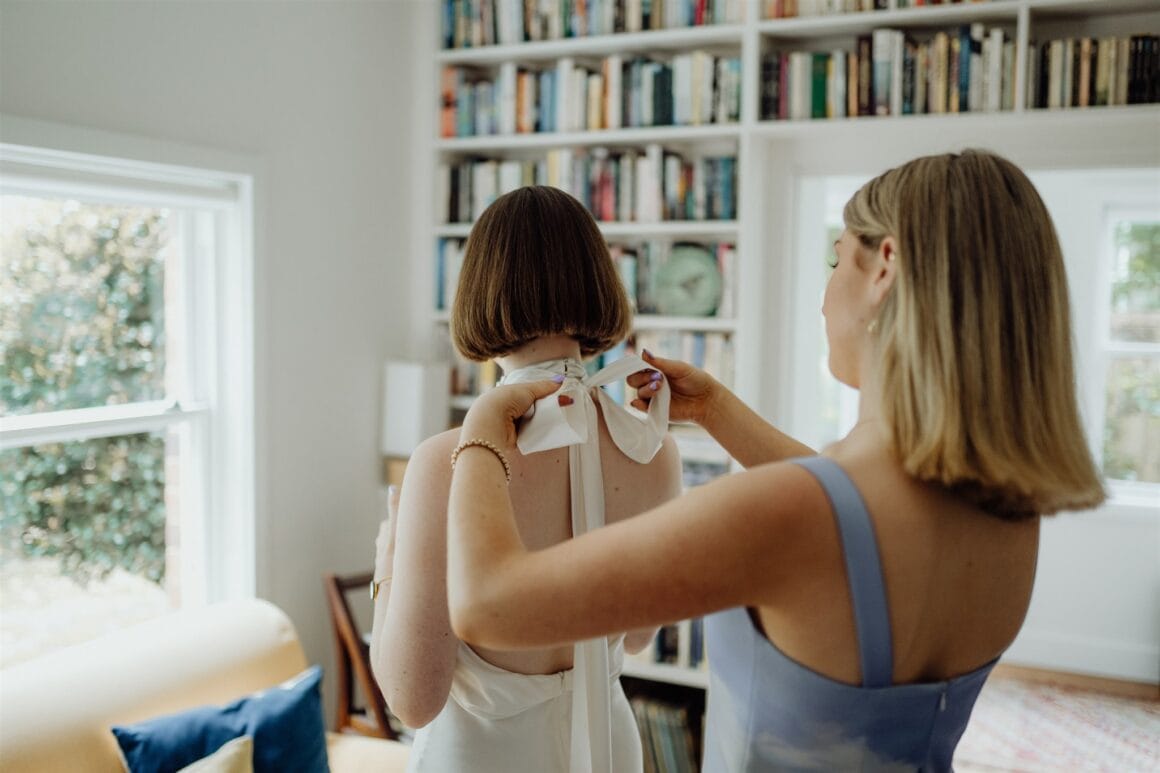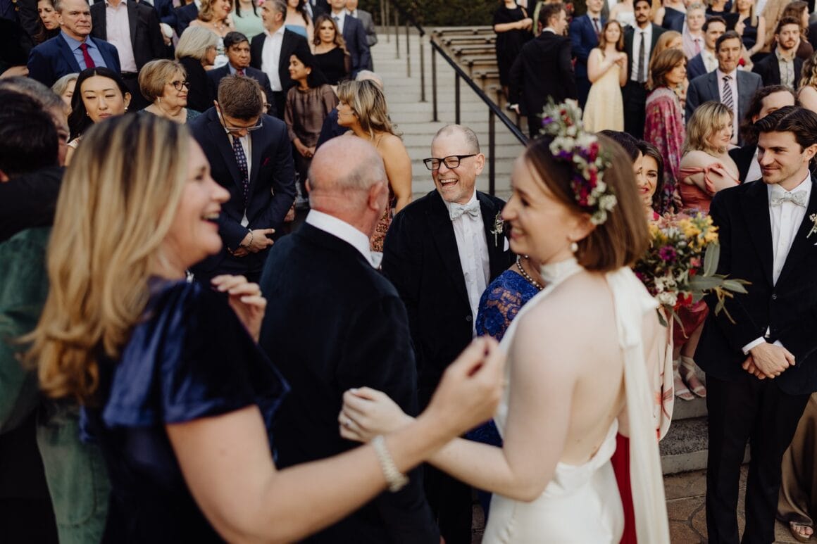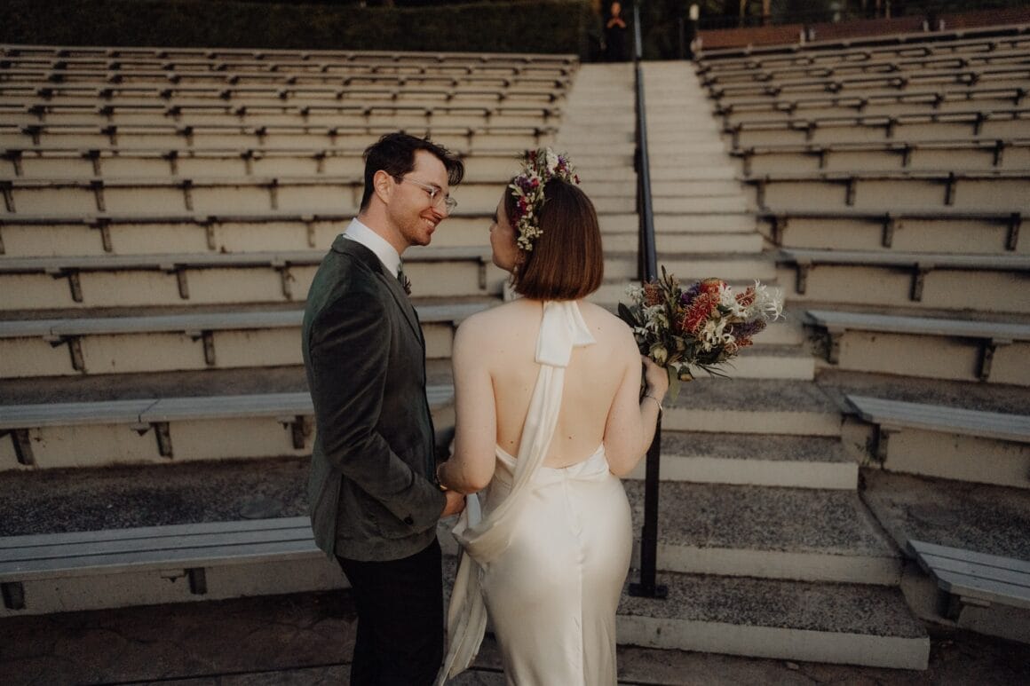MEMORABLE MOMENT “We had a first look and three or so hours of photos in Bradley’s Head and the zoo with our bridal party (our siblings), which was super fun, and felt very personal and special. It was so nice to have time together in the day, which was otherwise a bit manic, and walking through the zoo in our formal wear was very entertaining. The highlight was definitely our ceremony, though. There was a perfect sunset, and the atmosphere was just magic. We were both in tears almost immediately, and it was incredibly moving.”