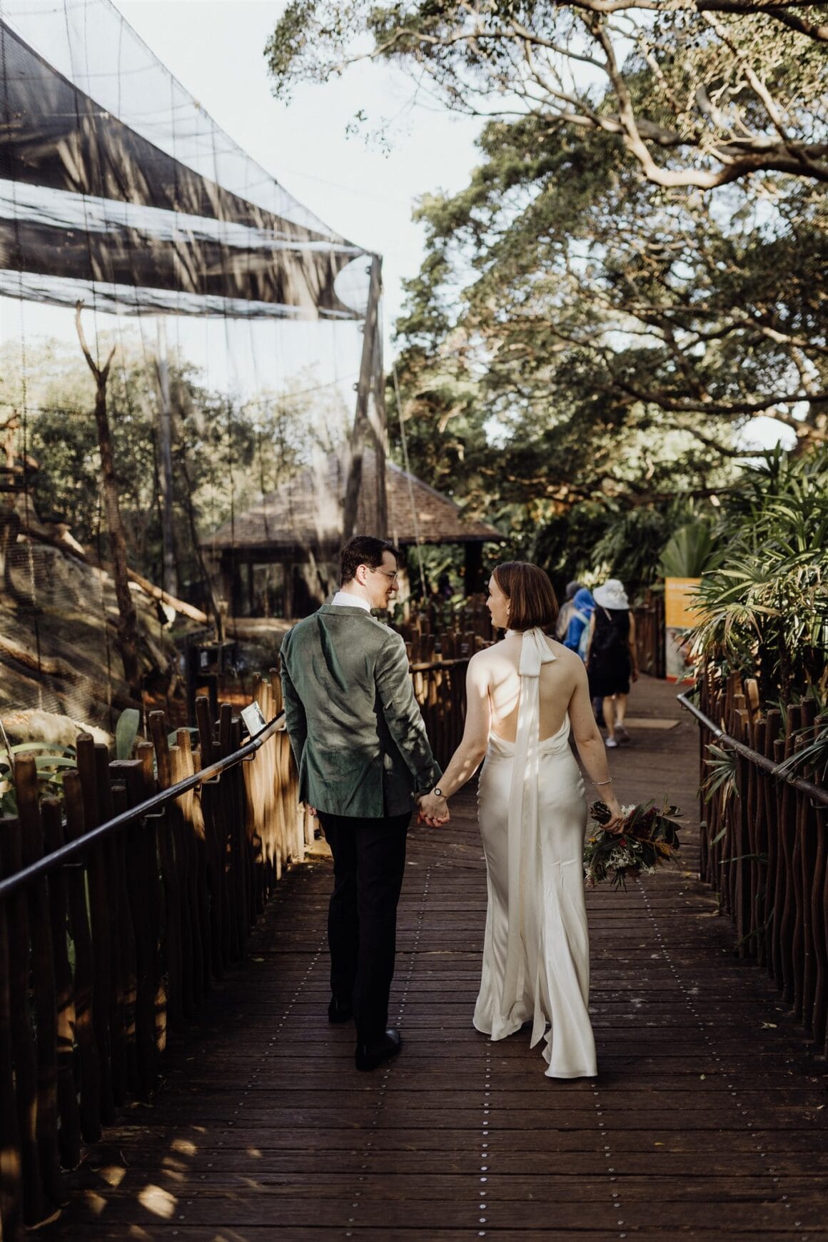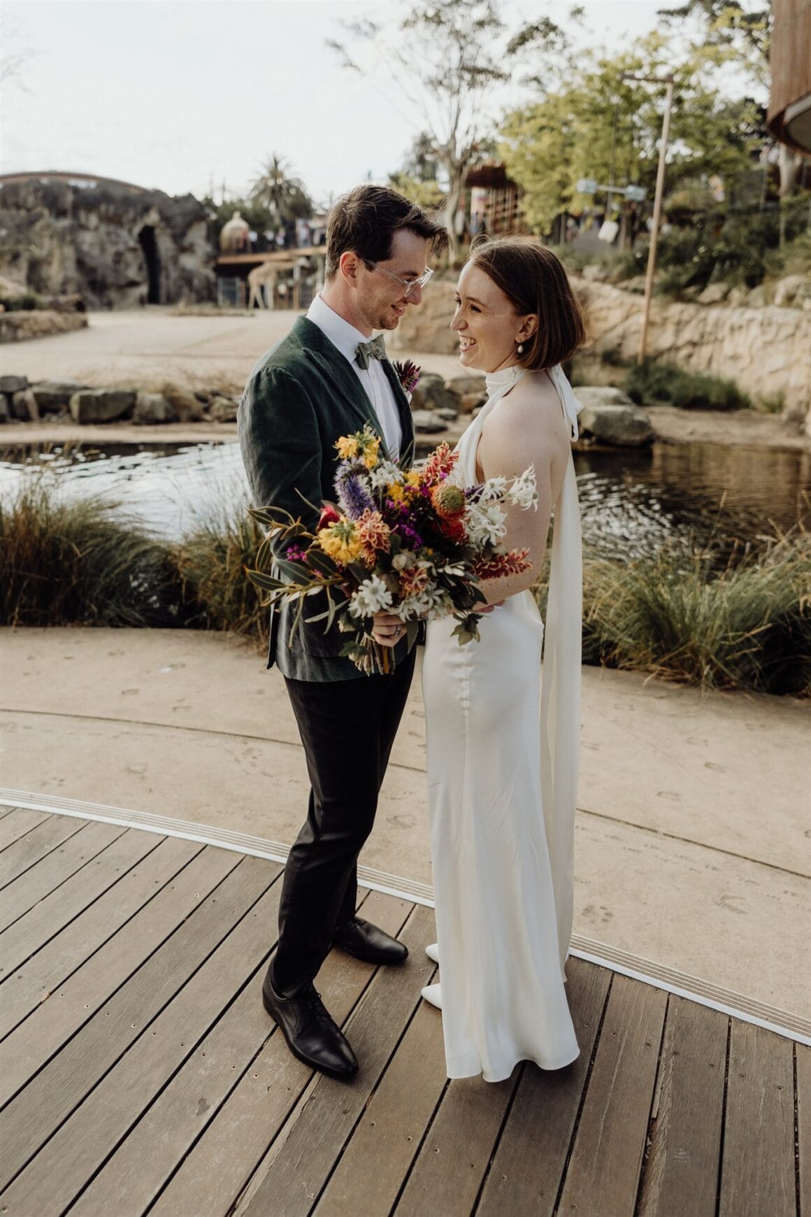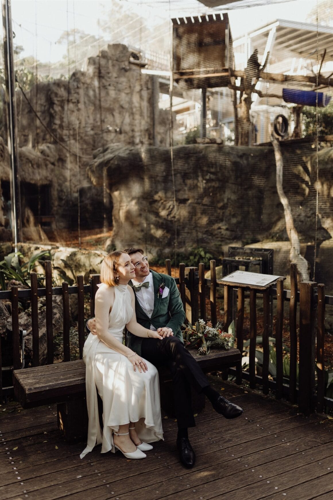 LITTLE LOL “Yanni’s glasses broke at 9 am on the day, which caused a bit of panic. Emergency fix at the optometrist, and all was saved. Also, being at the zoo, there were some really loud bird noises during our vows, which we had to embrace.”