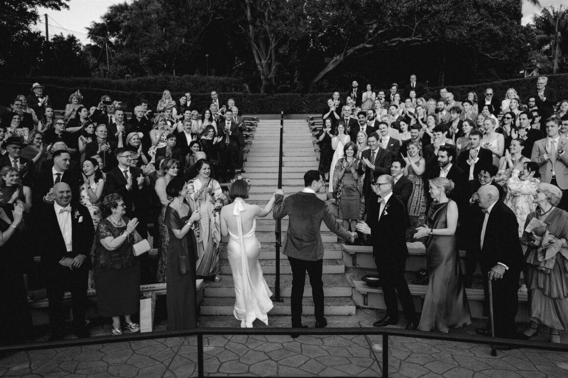 Say it with us: ‘It’s your wedding day, do it your bloody way!’ You wanna get married at Taronga Zoo? Go for it! Heck, that’s exactly what Yanni and Charlie did! This bride (in a sleek Rachel Gilbert gown) and groom (so cool in M.J. Bale) told us that as soon as they toured Sydney’s Taronga Zoo, they knew it was the wedding location for them. “We both love nature and animals, so it fit that well, but once we saw the view from the reception looking out over the harbour, we were sold.”