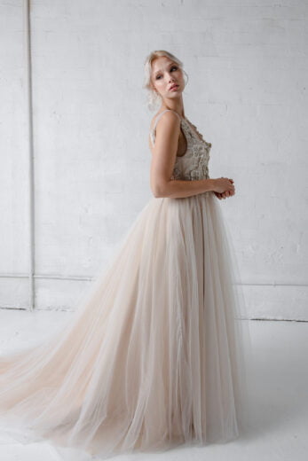 We offer both a showroom collection and also design one off gowns, for the bride who is looking for something truly unique, individual and beautiful. In fact, it is our mission to make not only a stunning garment for you, but also make the experience and the time shared within the Atelier, fun and memorable. Also an advocate of positive body image and sustainability practices, that are implemented in the day to day running of the business.