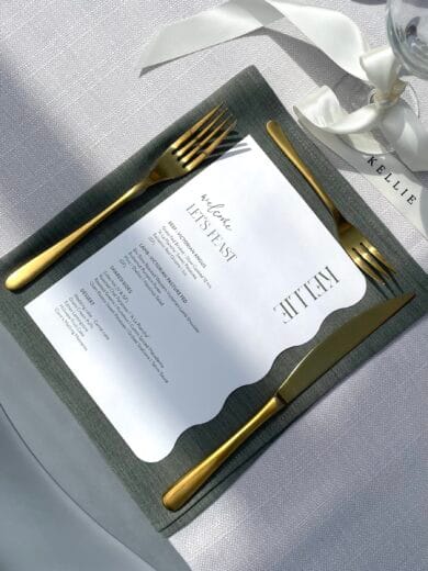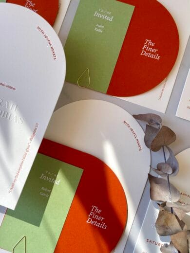 From invitations to your on the day stationery and signage together we can create a cohesive set of beautiful designs that truly reflects your unique style. From matching colours through paper stocks, getting the right vibe for your wedding through fonts and style chosen, to working with new layouts and shapes – creating your invitations and on the day stationery and signage can be stress free and so much fun!