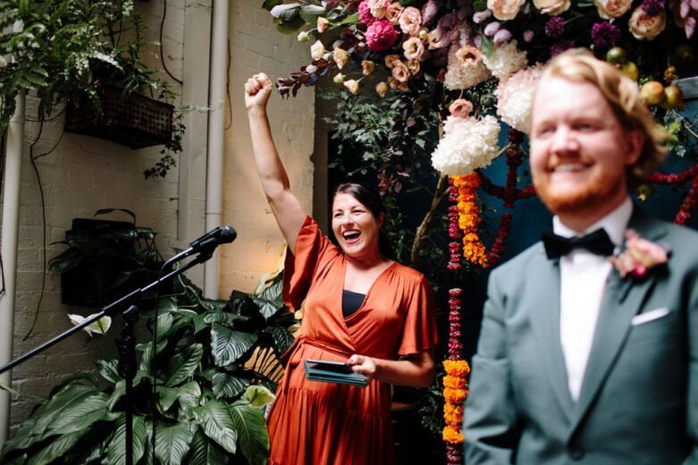 “…the utter joy and magic of watching this weapon work a room, keep things uplifting and fun, have the entire room in stitches one minute and be a voice of calm the next, and generally appear to be exactly what your celebrant SHOULD be – a legit friend of the couple! Get this legend on your dream team” – Wedding Photographer Oli Sansom.