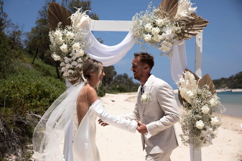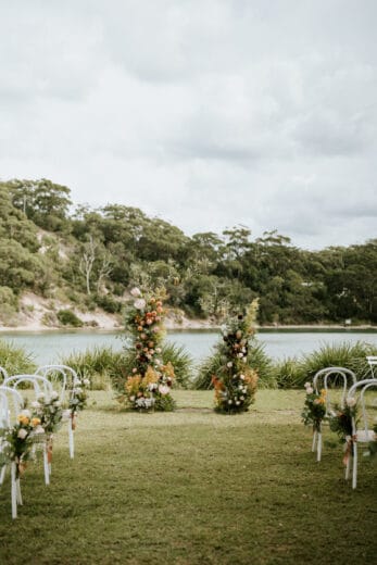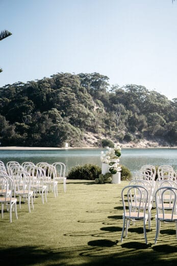The property features many beautiful spots to get ready, hold your ceremony, take photos, pour champagne and party with your loved ones. It’s pretty special. Our venue accommodates up to 111 guests and is surrounded by water and untouched bushland, offering an enchanting backdrop for you & your guests. The ceremony space borders the water and overlooks Sussex Inlet and is the most idyllic location to Tie The Knot. You could even get married on the beach. Our reception hall is a mix of coastal elegance and has been architecturally designed & decorated by Studio Pulp, with subtle touches and timeless features. With unique ocean views the reception hall, pavilion & village green are magical spaces.